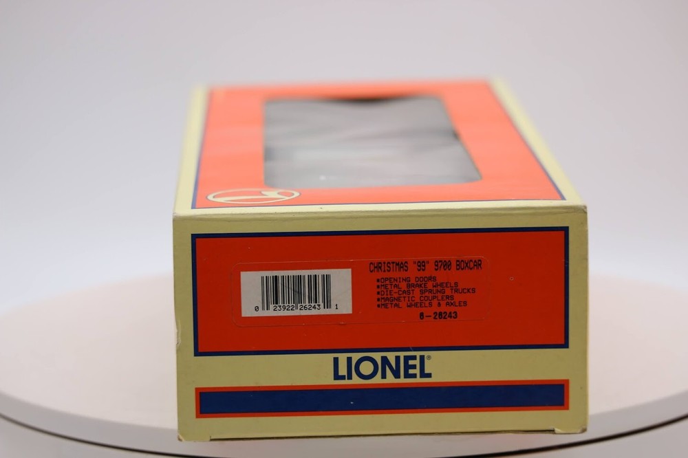 NEW OLD STOCK, NEVER TAKE OUT THE BOX Lionel 6-26243 1999 Christmas Boxcar New In box Look closely at the pictures to see further details. We ships USPS PLEASE see photos for detailed condition!! . PLEASE LOOK AT THE PHOTOS CAREFULLY BEFORE PURCHASING!! If you are purchasing more than one item from us and would like combined shipping, PLEASE request an adjusted invoice from us while still in the cart and BEFORE paying. Ebay does not usually calculate combined shipping accurately and you might get overcharged. Please be aware that when we photograph items, we use lighting that will show the details well. Although we try to present the product as accurately as possible, the lighting may affect the overall look of the item by appearing lighter/darker or possibly a different hue than the actual item. Depending on the type of lighting you have in your home, there may be some differences between the photos and the actual item. If this is a concern of yours, please feel free to request additional photos made in natural lighting or ask for a more detailed description of the item PRIOR TO PURCHASE! PLEASE NOTE: We greatly appreciate your interest in our item for sale. We look forward to a pleasant, quick and satisfying transaction for everybody, so please note the following information before bidding. Thank you! ITEM DESCRIPTIONS: * We will try to describe items well and provide plenty of photos. Please review these carefully before bidding or purchasing. * Only the items pictured and described are what you will receive when purchased. * We will occasionally offer an item clearly marked "AS-IS". This means that we are not sure if it works because we are unable to test it for whatever reason. We will offer these at a discounted price then a similar "working" item. It is possible that these items will work fine, but it also is possible that these items are more useful for their parts. Please only bid on or purchase these items if you are well aware of this, as we will only provide refunds of actual item price (no shipping cost refunds) for these items. * If you have any questions that aren't addressed by the descriptions or photos, please feel free to ask before you bid. * There may be pieces that are missing or broken including, but not limited to, couplers, brake wheels, steps, ladders, railings, etc. May need detailed cleaning SHIPPING: * We usually do not offer shipping to international addresses, but ARE WILLING TO TAKE CONSIDERATIONS. * We try to pack items as carefully as possible, but damage may occur during shipping. If you receive an item that was damaged in shipping, please contact us and we will work with you to resolve the problem. * We will combine shipping costs for all items the same buyer purchases from us within 2 days. Please wait to pay for items until you're done shopping with us. Please contact us if you're expecting to buy more items from us, or to have us adjust the shipping costs. * We will usually ship items out within 24 hours of payment being received Sunday through Friday at noon. We will notify the buyer if there will be a delay in shipping for some reason. Please allow additional time for holidays and weekends when the post office is closed. If payment is received after noon (EST) on Friday, the item might not be shipped until the following Monday. * We do try to recycle shipping materials as much as possible. RETURNS: We abide by eBay's Money Back Guarantee. We definitely want our customers to be happy with their purchase! You may return an item within 30 days of receiving it with the following guidelines: * If the item is defective or damaged (unless we clearly marked the listing "AS-IS"), the buyer will receive a full refund after the buyer returns it and it is received by us. Customers who falsely claim their item is defective, damaged, or not as described in order to receive a full refund and free return shipping will be permanently blocked from making future purchases from us. * If the item is as described (including "AS-IS" items) and the buyer decides for any other reason than defective/damaged to return it, only the actual price of the item will be refunded once it has been returned and it is received by us. The buyer will be asked to pay all original and return shipping charges. This includes all reasons other than defective/damaged, including wrong size, wrong type, changed mind, etc. All "AS-IS" items will fall into this category of return. Please make sure the item is what you want before purchasing it. * Please contact us before initiating a refund request. FEEDBACK: We always leave feedback at the end of transaction. We consider the transaction to be over when we receive feedback from the buyer confirming the item arrived satisfactorily. If you are unsatisfied with your purchase please contact us before leaving neutral or negative feedback. WE APPRECIATE POSITIVE FEEDBACK IF YOU ARE SATISFIED WITH YOUR PURCHASE! THANK YOU FOR YOUR INTEREST IN THIS ITEM!