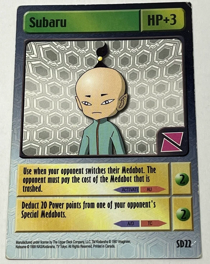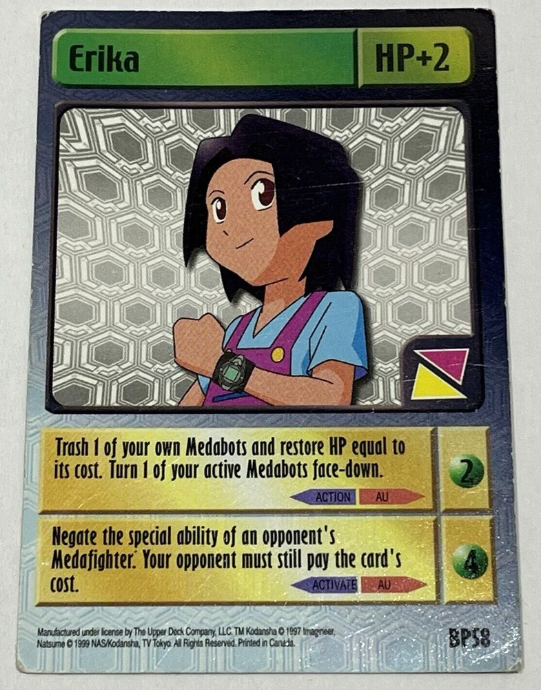 1999 Medabots Trading Card Game Erika and Starter Deck Subaru - BP58 - SD22 - MP. Cards are moderately played and have noticeable handling wear around the edges and corners. No major creases in either card. Cards included in this lot are Subaru (Starter Deck) SD22 and Erika BP58. Cards are in overall decent condition. See pictures as they are part of the description. Sold As Is. Items will be packaged securely and safely shipped via USPS Ground Advantage within 1-3 days of purchase! Feel free to send a message if you have any questions!