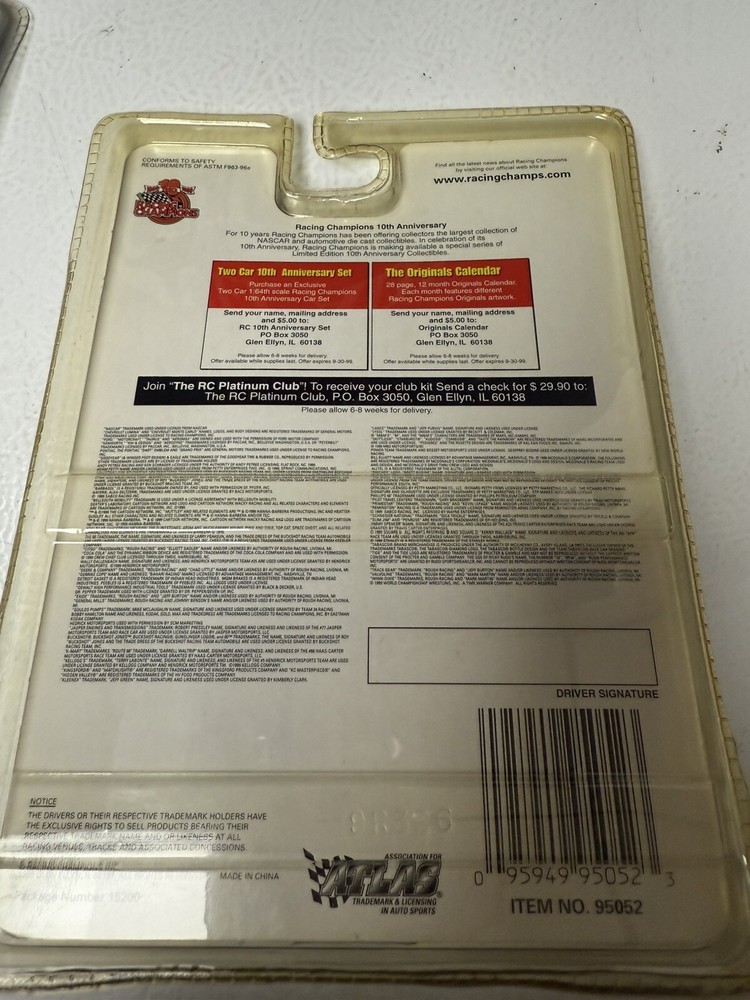 This 1999 NASCAR Racing Champions Alltel #10 Car Anniversary Edition is a must-have for any NASCAR fan. With its gold and chrome color scheme and 1 of 9,999 production, this car is a rare find. The car is brand new in its original packaging, making it a great addition to any collection. The car features the iconic Racing Champions brand and is officially licensed by NASCAR. The model is highly detailed and accurately represents the actual car that raced in the NASCAR series. This collectible is perfect for anyone who loves cars or is a fan of the NASCAR racing series.buyer to pay $6.95 shipping