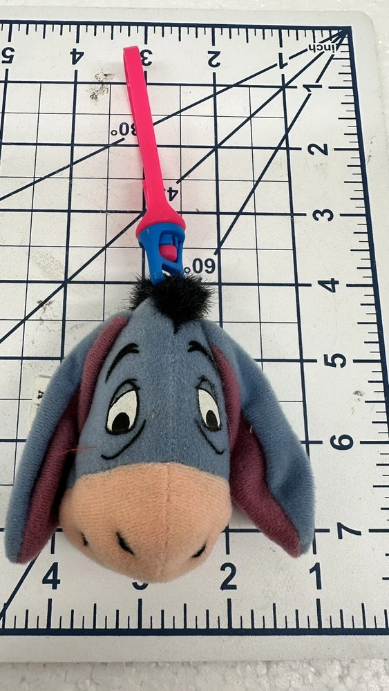 This adorable plush toy features Eeyore, a lovable character from the Winnie the Pooh & Friends franchise. It was originally released as a clip-on key chain for McDonald's Happy Meals in 1999, making it a rare and sought-after collectible item. The toy is made with high-quality materials and has been well-preserved over the years, ensuring that it will remain a cherished possession for years to come. The brand of this toy is Disney and it features the iconic character Eeyore. It is perfect for fans of Winnie the Pooh & Friends and collectors of fast food and cereal premiums. This item is a must-have for any toy enthusiast and will make a great addition to any collection.