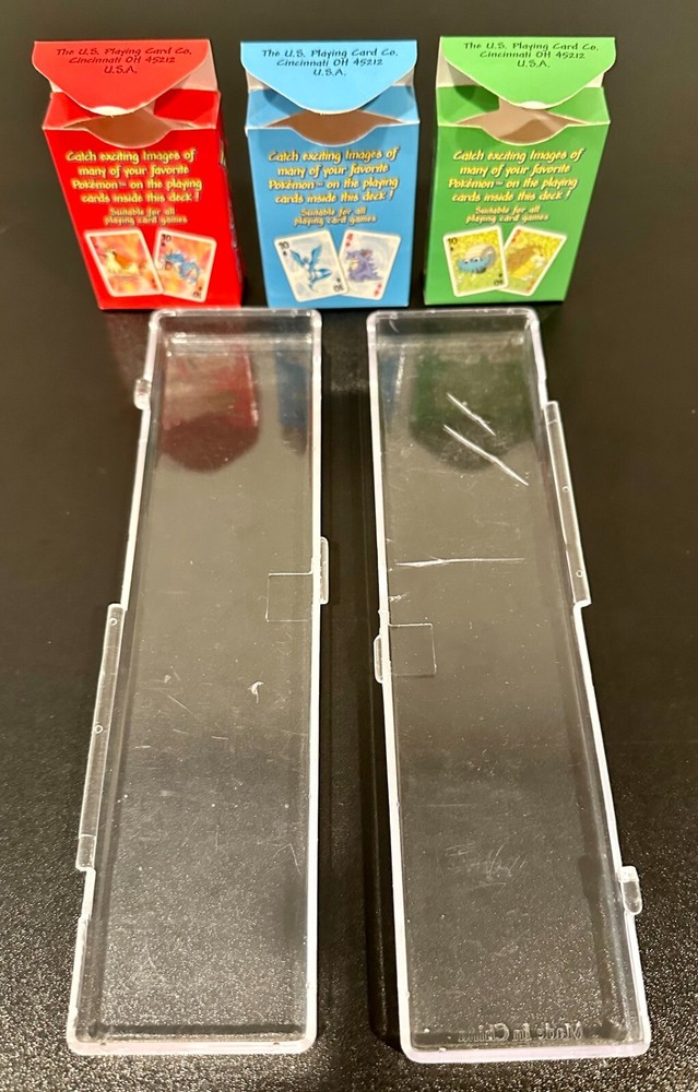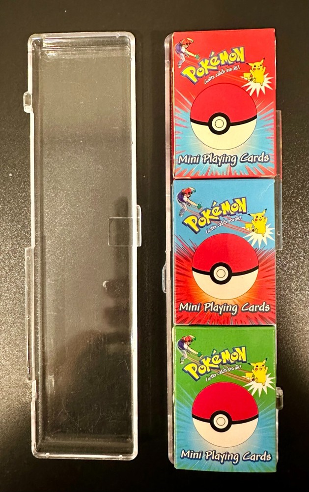 1999 Pokemon Mini Playing Card Boxes with Case (NO CARDS, JUST THE BOXES). The case is broken but still closes. Ships free via USPS Ground Advantage.
