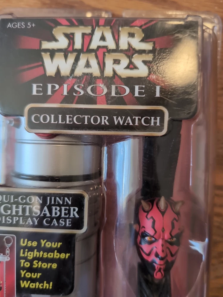 1999 Star Wars Episode 1 Darth Maul Collector Watch with Qui-Gon Jinn Lightsaber Display Case . New and still in box unopened.