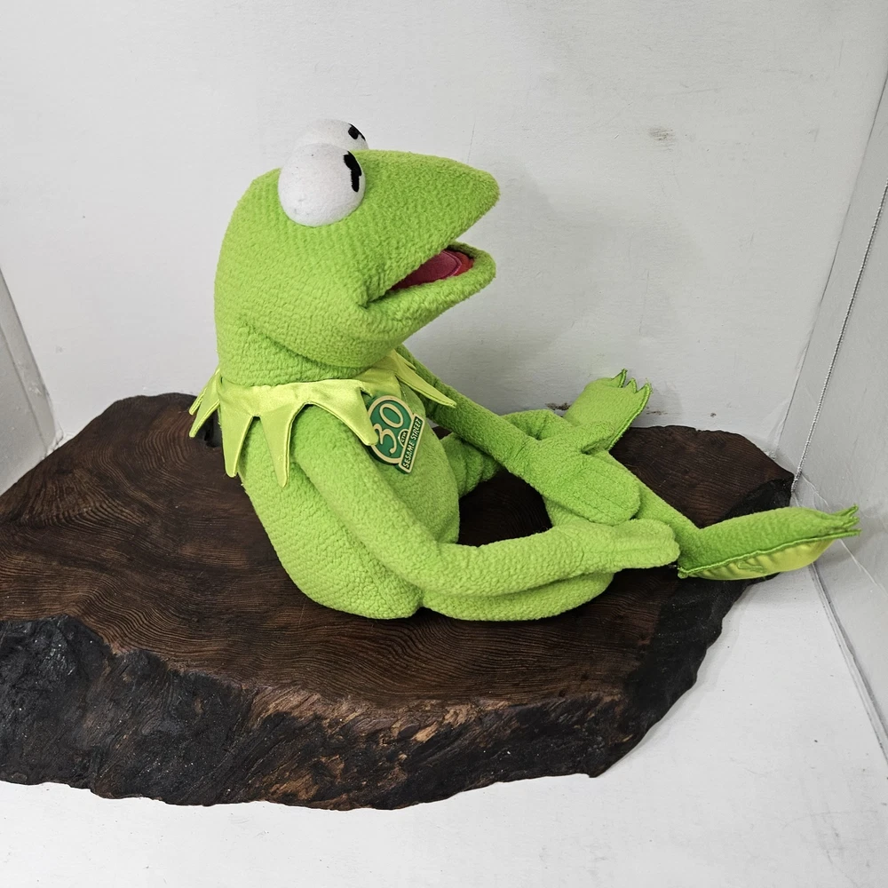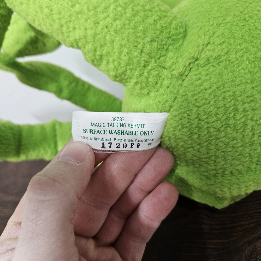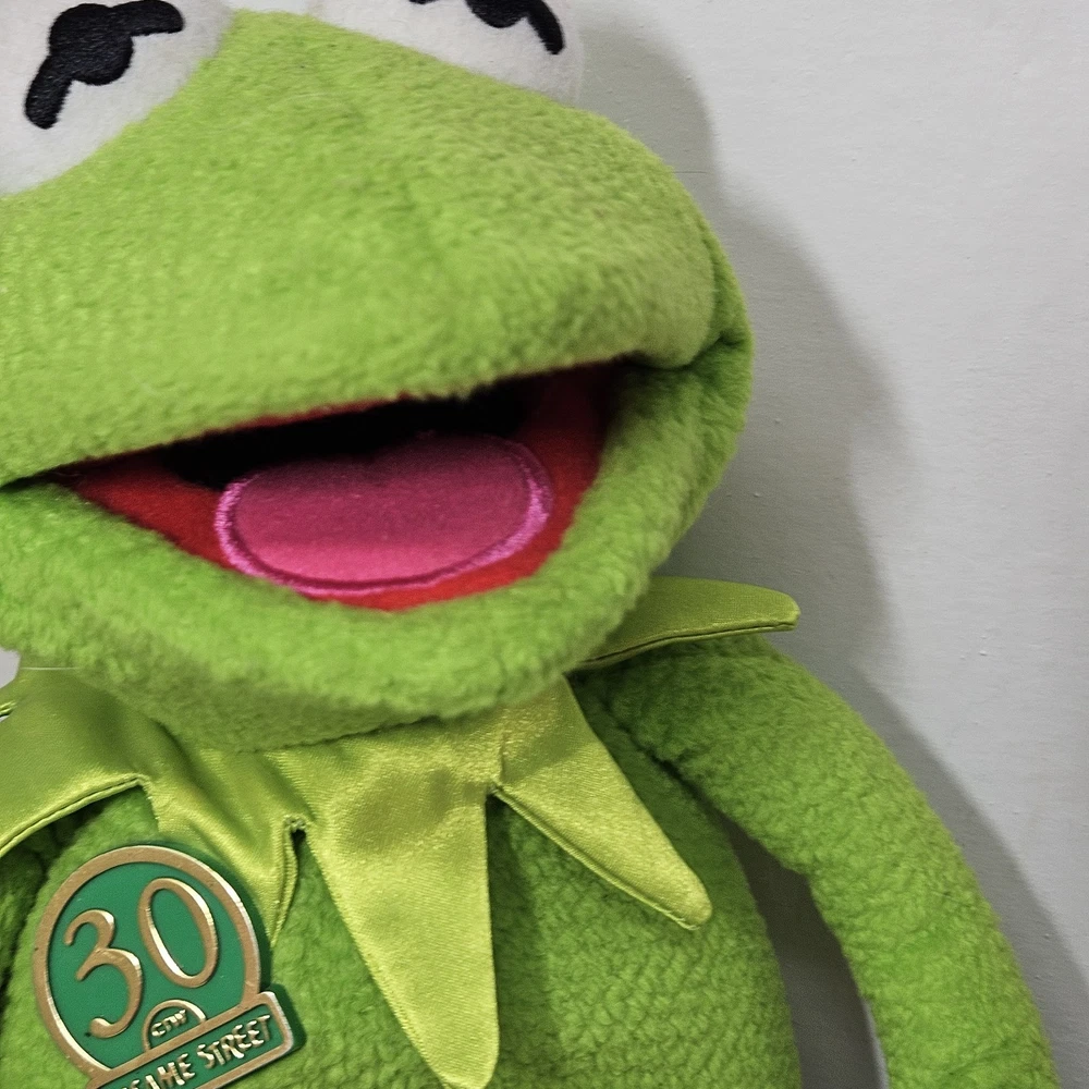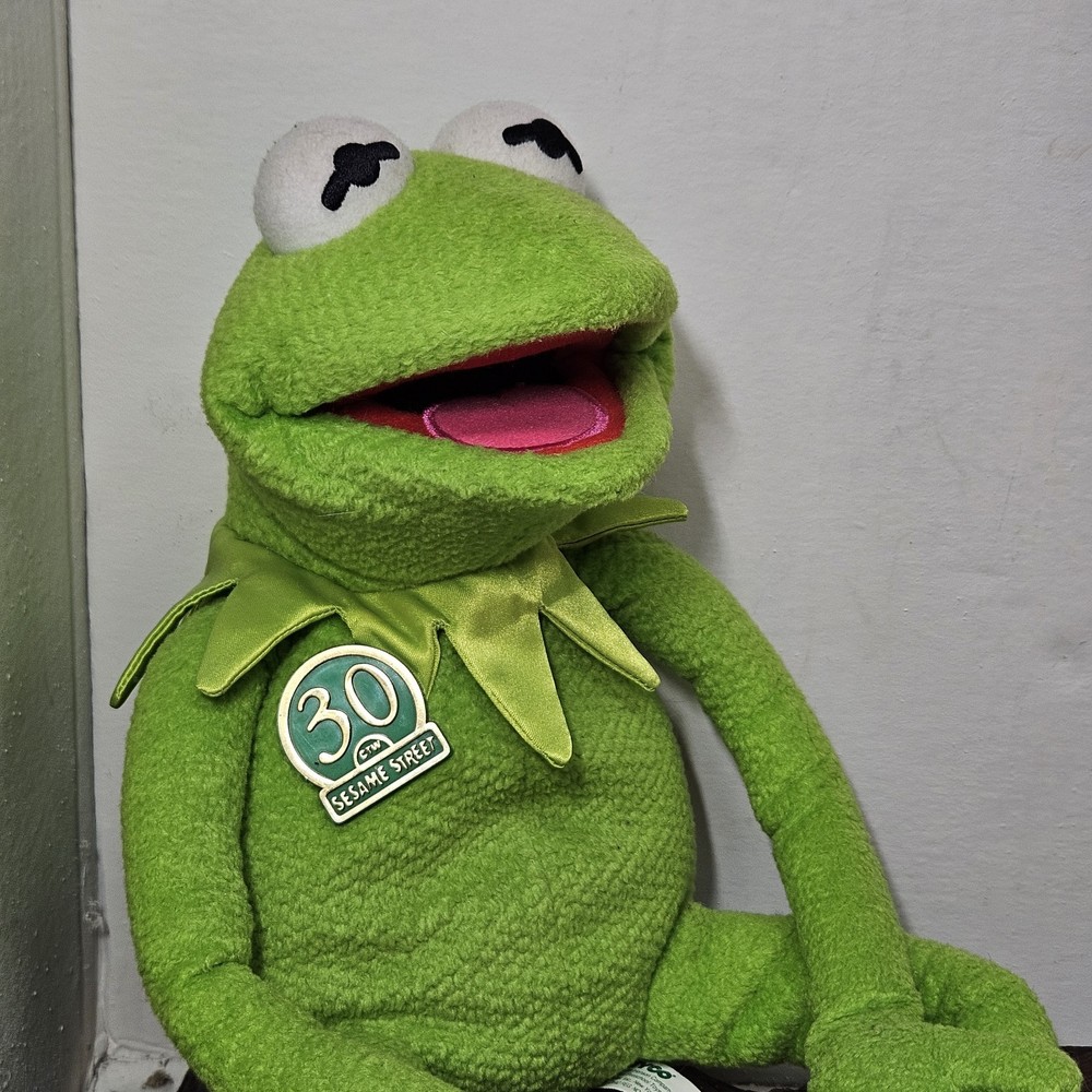 Delve into the world of nostalgia with the 1999 Tyco KERMIT the Frog 30th Anniversary Magic Talking Singing Plush. This charming large plush captures the heart of the Muppets franchise and brings a touch of vintage charm to any collection. Ideal for fans and collectors, the plush is adorned with the classic Kermit character, boasting the ability to sing and talk, a delightful feature that brings the iconic character to life. Crafted with the quality Tyco brand is known for, this Kermit plush is a testament to the enduring legacy of the Muppets. Measuring between 24-36 inches, it's the perfect size to be a cuddly companion or a standout display piece. Celebrate three decades of whimsical fun with this enchanting piece that is as delightful to engage with as it is to collect. Small damage to the cloth over one of the eyes please see photos