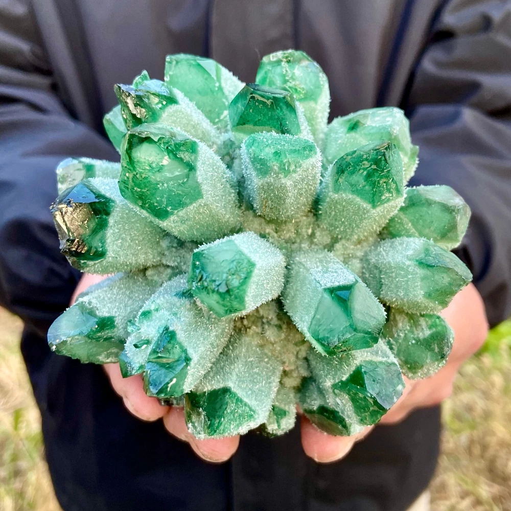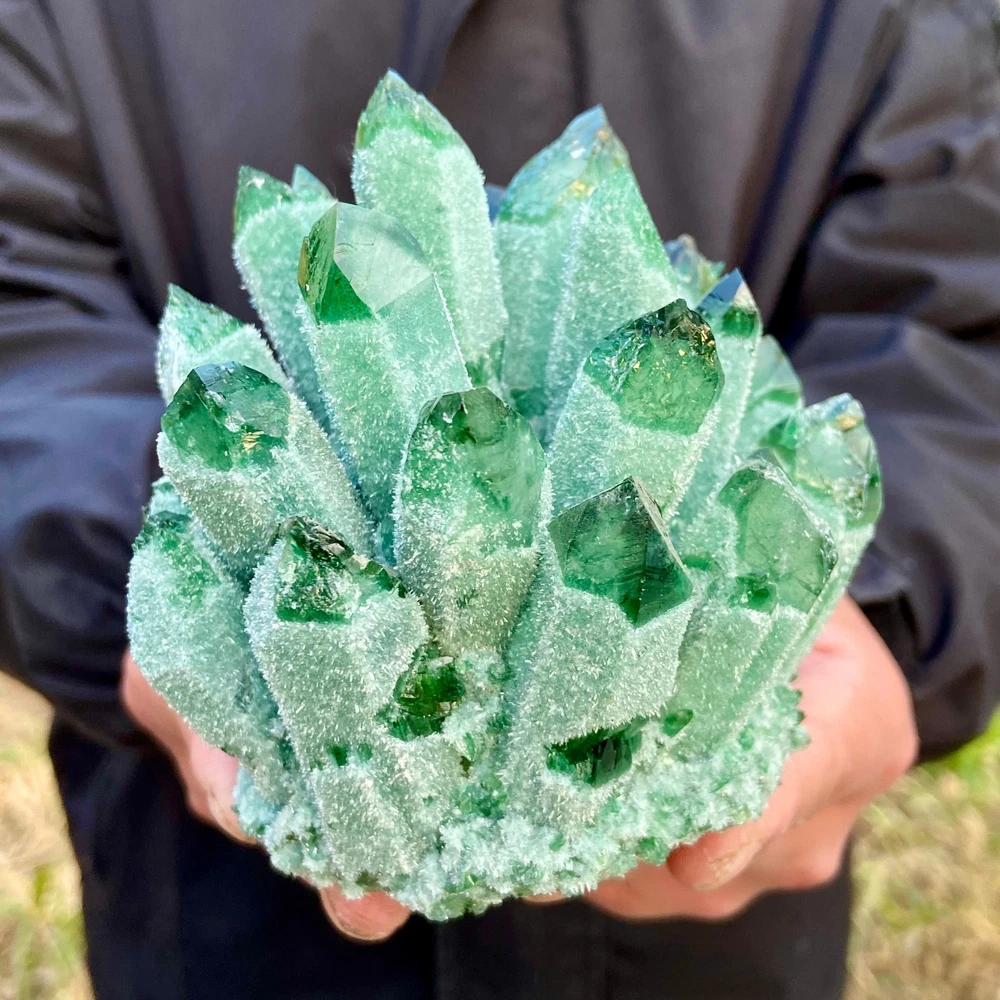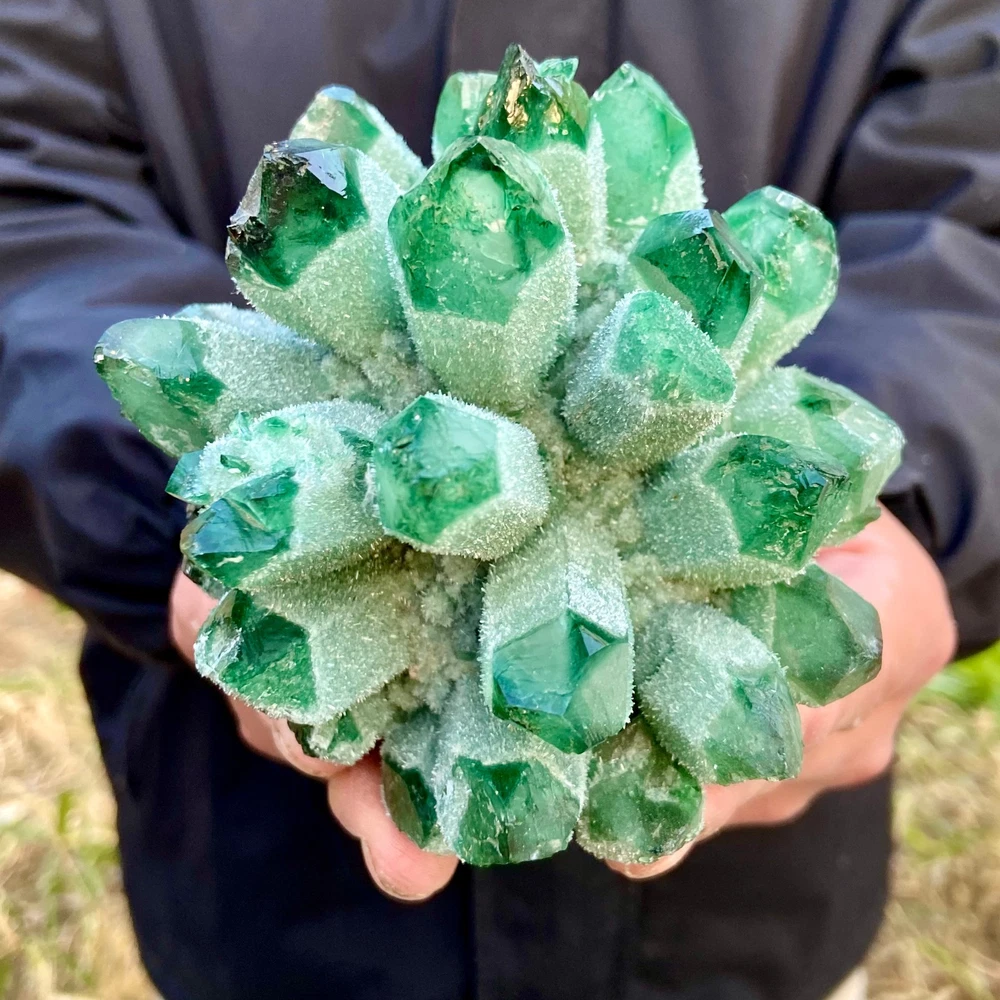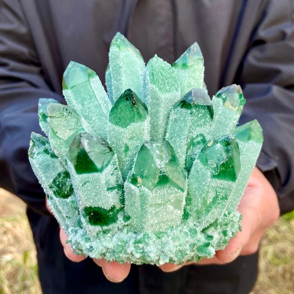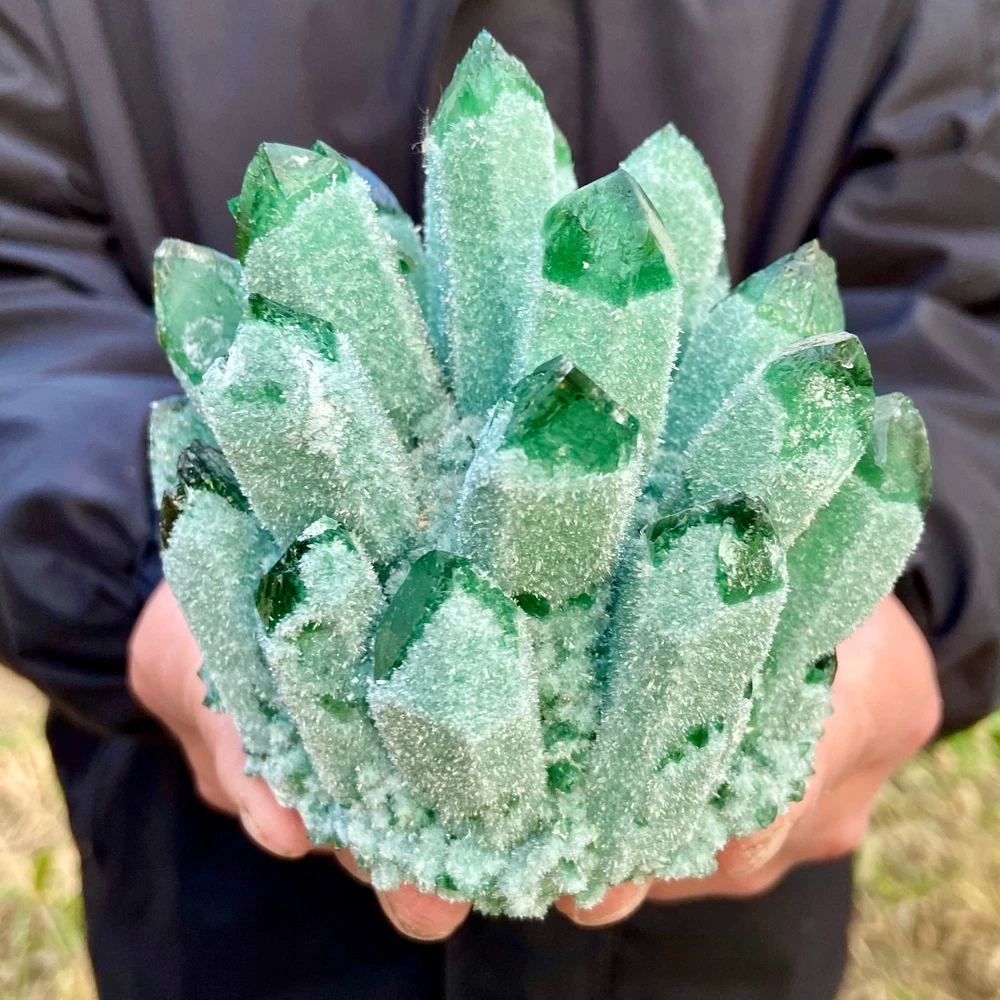 1.99LB Newly Discovered GREEN Phantom Quartz Crystal Cluster Mineral Sample