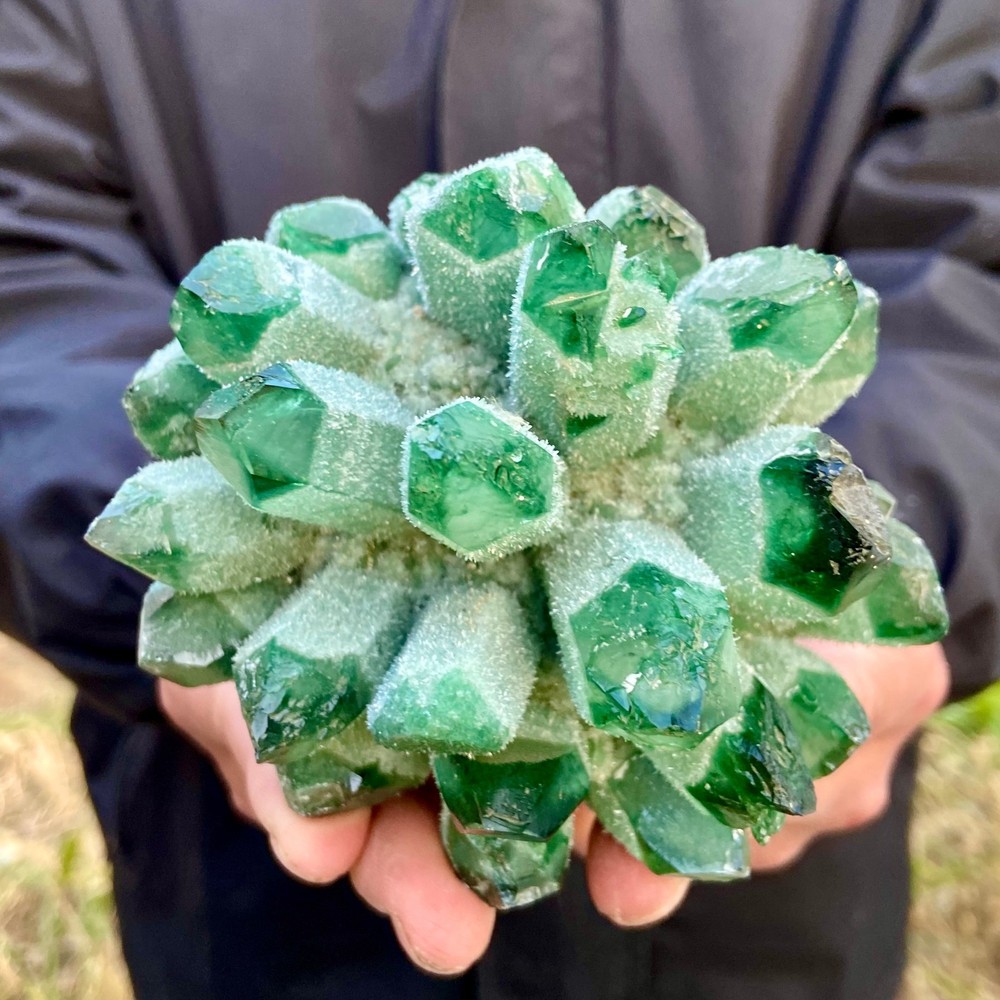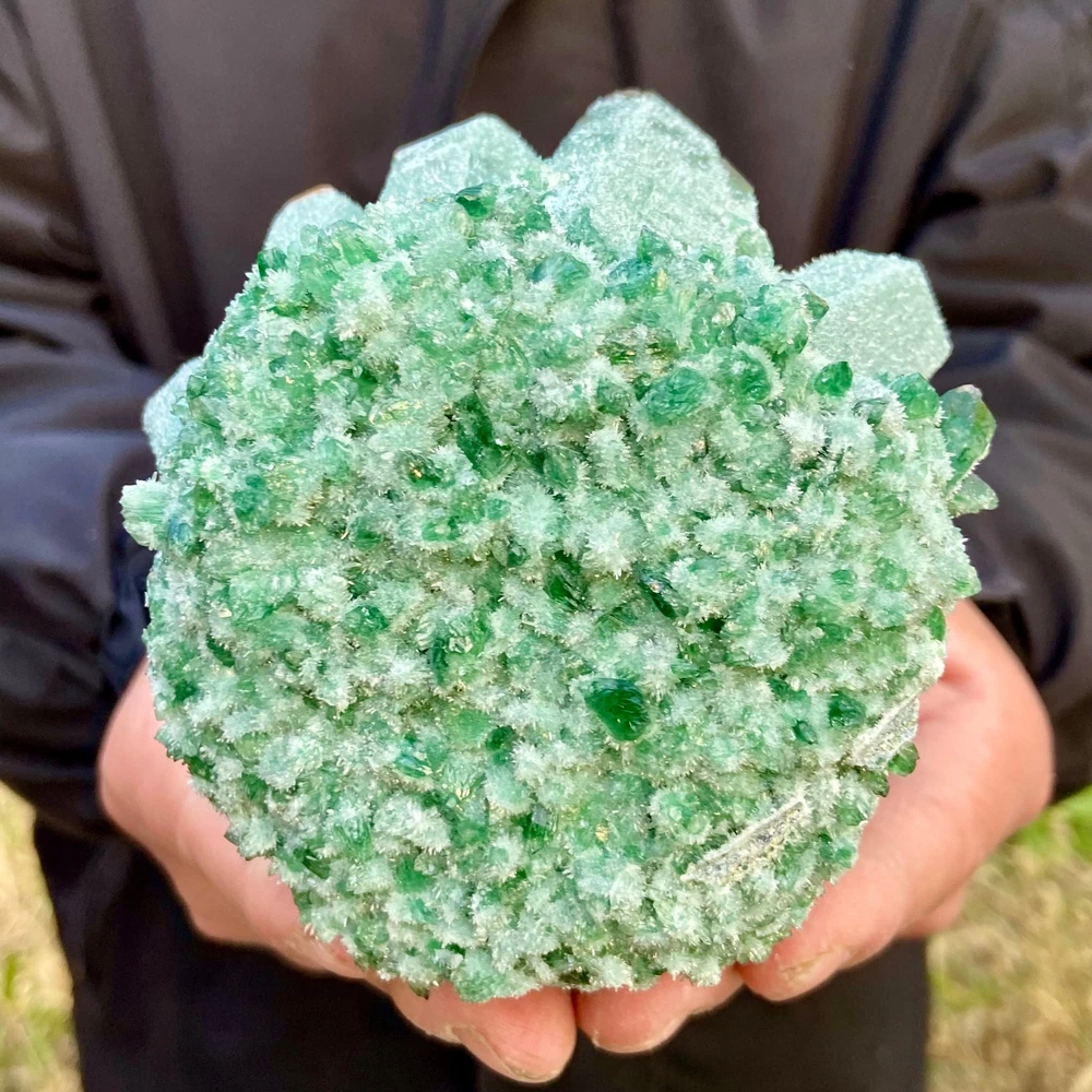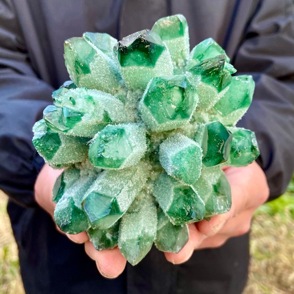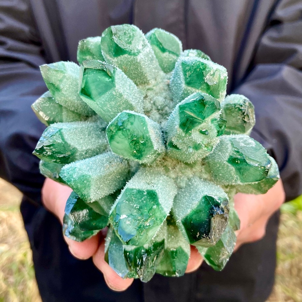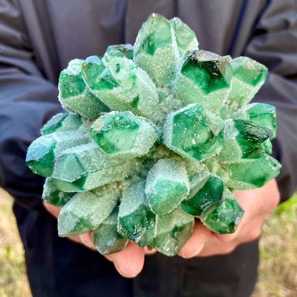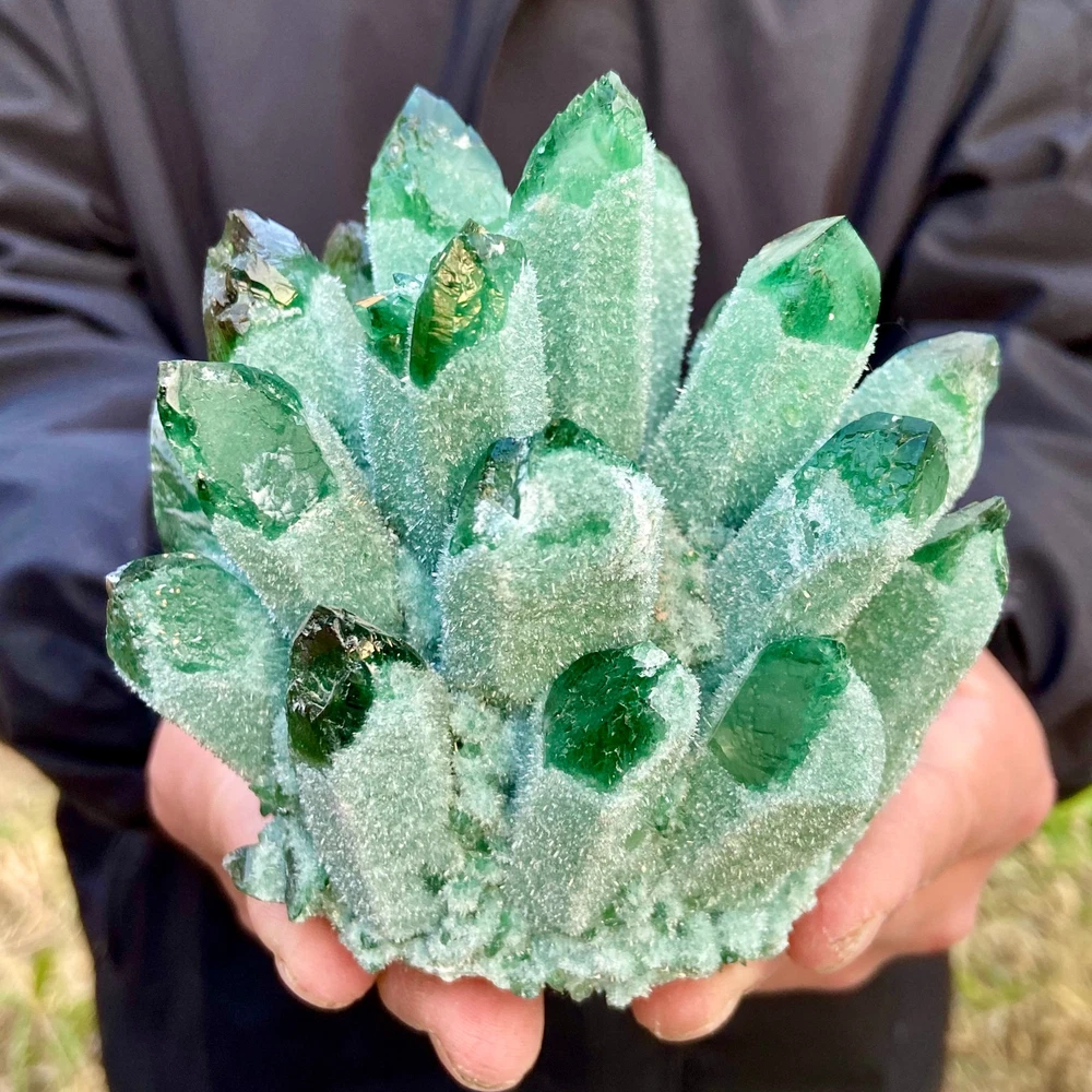 1.99LB Newly Discovered GREEN Phantom Quartz Crystal Cluster Mineral Sample