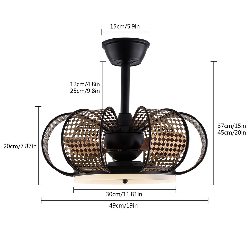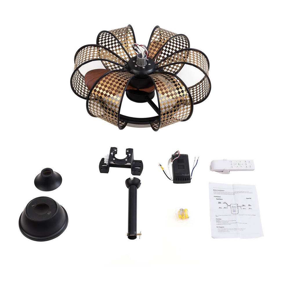 Specification Material: Iron Style: Retro Color: Black, Gold Process: High-temperature Baking Paint Voltage: 85-265V Power: 40W(Fan), 24W(Light) Efficiency: E Motor: Pure Copper Motor Light Source: LED(Included) Applicable Area: 10-15m2/107.63-161.45ft2 Timing: 1, 2, 4 h Fan Gears: 6 Light Colors: White, Yellow, Neutral Number of Lampshades: 6 Number of Fan Blades: 3 Mounting Type: Ceiling Mount Shape: Flower Lampshade Size: 49*49*20cm/19*19*7.87in LED Light Diameter: 30cm/11.81in Base Diameter: 15cm/5.9in Product Height: 45cm/20in, 37cm/15in Support Rod Height: 12cm/4.8in, 25cm/9.8in 💖 WELCOME 💖 Description The Exquisite Ceiling Fan Lamp Not Only Adds Elegant and Luxurious Style to the Room but Also Creates a Comfortable and Warm Home Environment for You. the Three-color Adjustable Led Ring Light Band Allows You to Easily Adjust the Light Color According to Your Needs. at the Same Time, the Ceiling Fan Lamp with the Function of Timing Gives You a Better Experience. Key Features High-quality Materials : Our Ceiling Fan Light Is Made of High-quality Iron. the High Hardness and Strength of the Iron Make the Lampshade Strong and Durable. Six Wind Speeds : Our Ceiling Fan Light Has Six Wind Speeds to Meet Your Different Needs. the Higher Wind Speed Can Cool the Temperature Quickly, While the Middle Wind Makes You Feel the Natural Cool Breeze. the Lower Speed Wind Can Keep You Cool at Night Without Getting Cold. Pure Copper Motor : This Ceiling Fan Light Uses a Pure Copper Motor to Power It. the Pure Motor Has less Resistance so It Is More Durable. and Compared with the Aluminum Motor, the Pure Copper Motor Generates less Heat and Is More Energy-efficient. Easy to Operate : Our Ceiling Fan Light Is Equipped with Remote Control. Whether Lying or Sitting You Can Control the Wind Speed by Pushing the Button, Which Is Very Easy and Convenient. Timing Function : Our Ceiling Fan Light Has an Intelligent Timing Function, You Can Set the Timing for 1, 2, or 4 Hours According to Different Needs. the Thoughtful Timing Function Guards the Health of You and Your Family so That You Can Sleep with Peace of Mind. Quiet Operation : Our Ceiling Fan Light Uses a Low-noise Pure Copper Motor. Such a Low-noise Operation Fan Light Creates a Cool, Comfortable, and Quiet Environment for You, Whether Reading, Studying, or Sleeping Without Being Disturbed. Wear-resistant and Rust-proof : the Ceiling Fan Light Adopts an Exquisite High-temperature Baking Paint, so It Is Wear-resistant and Rust-proof . Such a Baking Paint Surface Makes This Ceiling Fan Light More Durable. Easy to Clean : the Baked Lacquer Surface and Smooth Fan Blade of This Ceiling Fan Light Are Easy to Clean. You Only Need to Use a Damp Cloth to Wipe Gently. Eye Protection : the Ceiling Fan Lamp Uses a Non-flashing Led Ring Light Band to Provide You with Soft and Non-dazzling Light. Whether You Are Watching Tv or Reading at Home, It Can Protect Your Eyes from Vision Loss. Retro Appearance : Six Petal-shaped Hollow Lampshades, Brown Fan Blades, and a Black Paint Base Create a Retro Elegant Style, Which Can Decorate Rooms of Different Styles. Adjustable Heights : t he Product Comes with Two Different Lengths of down Posts to Meet Different Needs and Different Ceiling Heights. the Total Height of the Product Is 20/15 Inches When the Long/Short Post Is Installed. Customer Service : We Aim to Provide Quality Products and Services. If You Have Any Problems, Please Feel Free to Contact Us. We Will Reply and Solve the Problem for You As Soon As Possible. Details Wider Fan Blades : the Fan Blades Are Widened to Increase the Contact Area with the Air, Which Is Not Only Durable but Also Strong in Wind Power. Mesh Lampshade : the Unique Mesh-type Lampshade Makes the Light More Even and Soft, Which Will Bring You a More Comfortable Experience. Thickened Base : the Base Is Thickened to Make It More Sturdy. the Thickened Baking Paint Base Can Support the Lamp Very Well. Remote Control Rack : the Wall-mounted Remote Control Rack Allows You to Fix the Remote Control on the Wall for Easy Access to Prevent Loss. Application This Ceiling Fan Light Is Suitable for Use in Bedrooms, Living Rooms, Study Rooms, Etc. with an Area of 107.63-161.45ft 2 . Our Ceiling Fan Light Will Bring You Bright Light and a Cool Breeze. Package Included 1*Ceiling Fan Light 1*Remote Control 1*English User Manual All Accessories Needed for Installation Notes Please Allow the Slight Color Difference Caused by the Shooting Light and 1-3cm Error Due to Manual Measurement. Please Make Sure You Do Not Mind Before You Order. Payment Delivery details Terms of sales About us Contact us Payment We accept ebay payment 。 Fees such as import duties, taxes are not included in the item price or shipping costs. These charges are the buyer's responsibility. Delivery details Shipping: 2-9 working days to: USA Terms of sales We maintain high standards of excellence and strive for hundred percent customer satisfaction. Feedback is very important to us. We hope that you contact us immediately before you give neutral or negative feedback, so that we can address your concerns. It is impossible to address issues if we do not know about them! About us Your satis faction is our ultimate goal. We work hard to earn your trust and future business. Our certified technicians have tested each item before shipping. The unit comes with 1 year limited warranty on all manufacturing defects. a) If you receive a defective item, you may return it or ask for a discount. Please contact us within 14 days after you receive the package. b) What you returned must be intact and in its original packaging as re? u. Customer is responsible for shipping costs of the returned item. c) We will cover the cost of shipping back t with the shipping rate indicated in the registration page. We will send you a new unit or refund the full payment you paid. Thank you. Contact us Business Hour Business Hour: Monday To Friday: 8:30 AM to 5:00 PM (Be