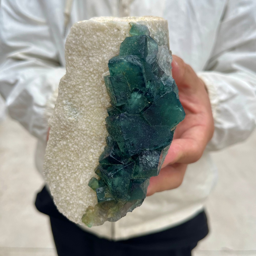 1. Amazing blue green hues in the fluorite. Item got here super quickly and it was wrapped completely in bubble wrap and tape. It looks exactly like the picture. It’s a solid chonk of a rock with interesting white flecks of crystal on the bottom. A+ transaction!!!