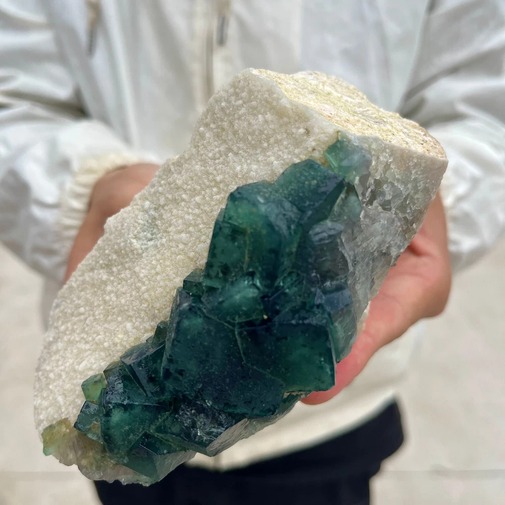 1.9LB Natural Green Fluorite Cube Quartz Crystal Cluster Mineral Specimen