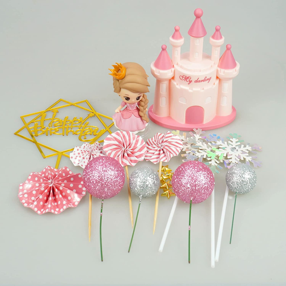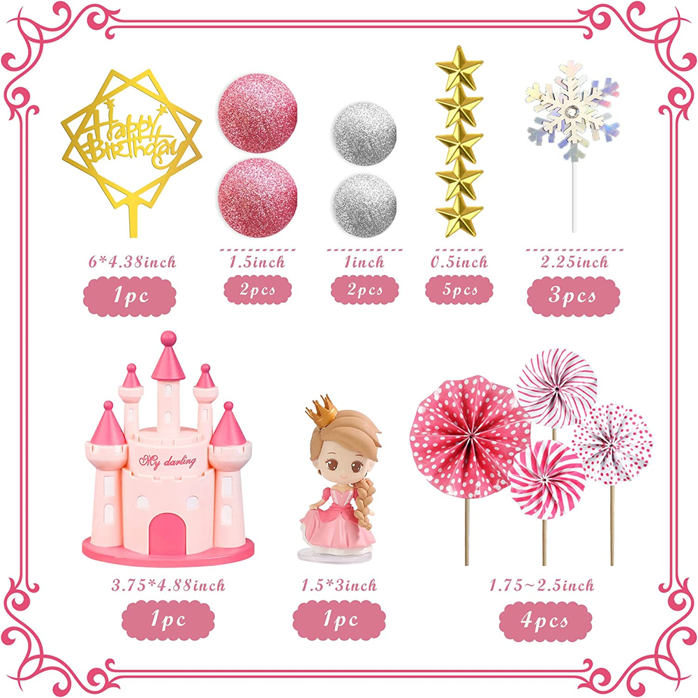 19PCS Princess Cake Topper Castle Cake Decoration for Girl with Snowflake and Stars for Girl Kid Happy Birthday Party Decorations Princess Baby Shower Supplies (Pink) Package Contents:These castle cake toppers including 1 castle model,1 princess model,1 Happy Birthday topper,3 snowflakes,5 stars,4 folding fans,4 small balls.The specific dimensions are shown in the drawing,suitable for children over 8 years old. Safe Material:The princess,stars,balls and castle are made of rigid plastic that is sturdy and unbreakable, snowflakes and happy birthday topper are made of high quality paper,safe. Unique Design:These girl cake decorations are plentiful, we've carefully matched a variety of princess elements to add a elegant vibe to your desserts, balls and snowflakes are finished with glitter, your artistic cake will grab the attention of your guests. Wide Uses:These princess birthday decorations have vivid shapes and are suitable for cupcake decorations, kid's birthday parties, theme parties, baby shower, anniversaries, garden parties, home decor and more. Besides being used as cake decorations, Model can also be used as toys for children. Exquisite Appearance:Decorate your desserts with these realistic flora and fauna to inspire imagination and creativity to create lasting memories for your guests. Product Description Item model number GCMGL10019 Unit Count 1 Count Style Pink Product Dimensions 4.1"W x 2.3"H Country of Origin China Item Weight 4.6 ounces Manufacturer recommended age 6 - 15 years Occasion Birthday 2.3 "h x 4.1 "h. Weight: 4.6 oz Shipping from the USA All of our products are shipped from the USA, ensuring quick delivery to your destination. Payment We offer the following payment methods: PayPal, credit card, bank transfer, and eBay's secure payment system. Free Shipping & Free Returns Shipping within the USA is FREE. Additionally, any return is absolutely free for you. Risk-Free Purchase You have the option to return an item within 30 days without any justification. We cover the return shipping costs! Fast Shipping We ship immediately upon receipt of payment. Generally, the package is delivered within 2-3 days in the USA. If it takes longer, we will contact you. Quality and Costs Made in Europe, USA, China No customs fees or additional charges Total satisfaction guarantee Invoice with declared VAT available upon request in .pdf format Feedback Your feedback is very important to us. After you pay for your purchase, you will automatically receive positive feedback from us.