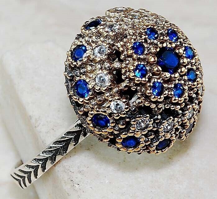 1CT Treated Sapphire 925 Sterling Silver Ottoman Empire Style Ring Size 7.5 Z1-4