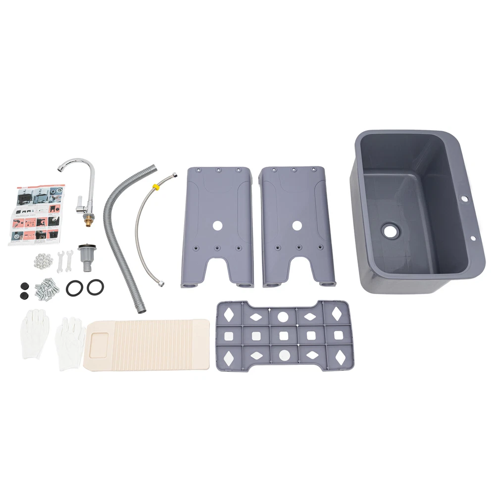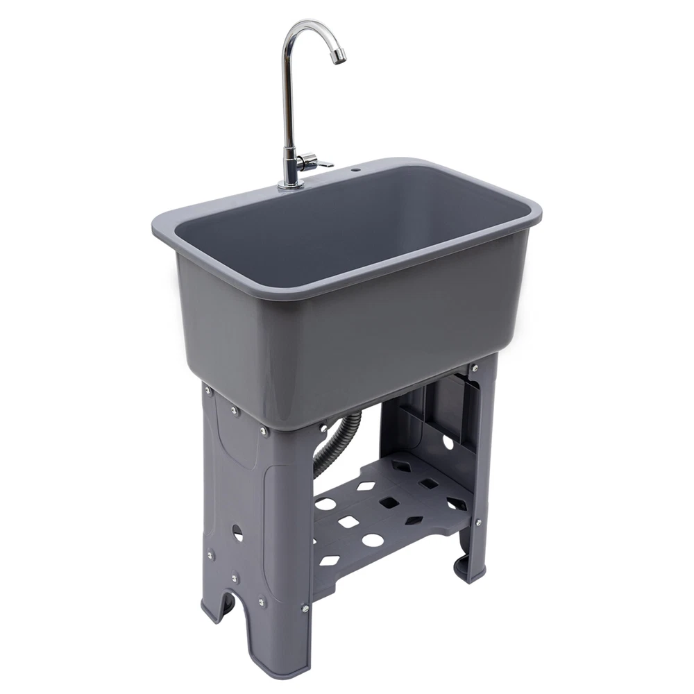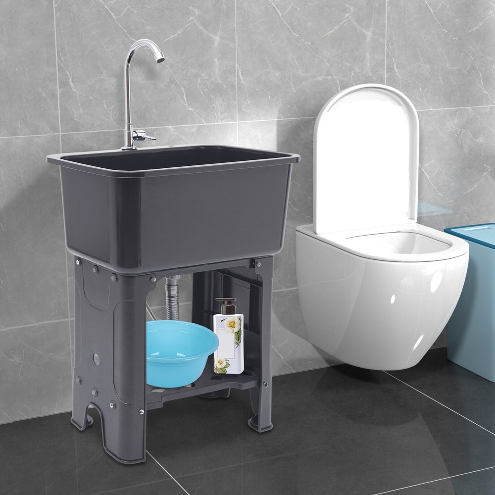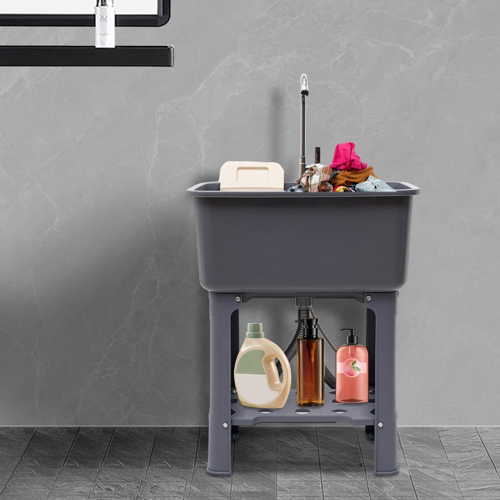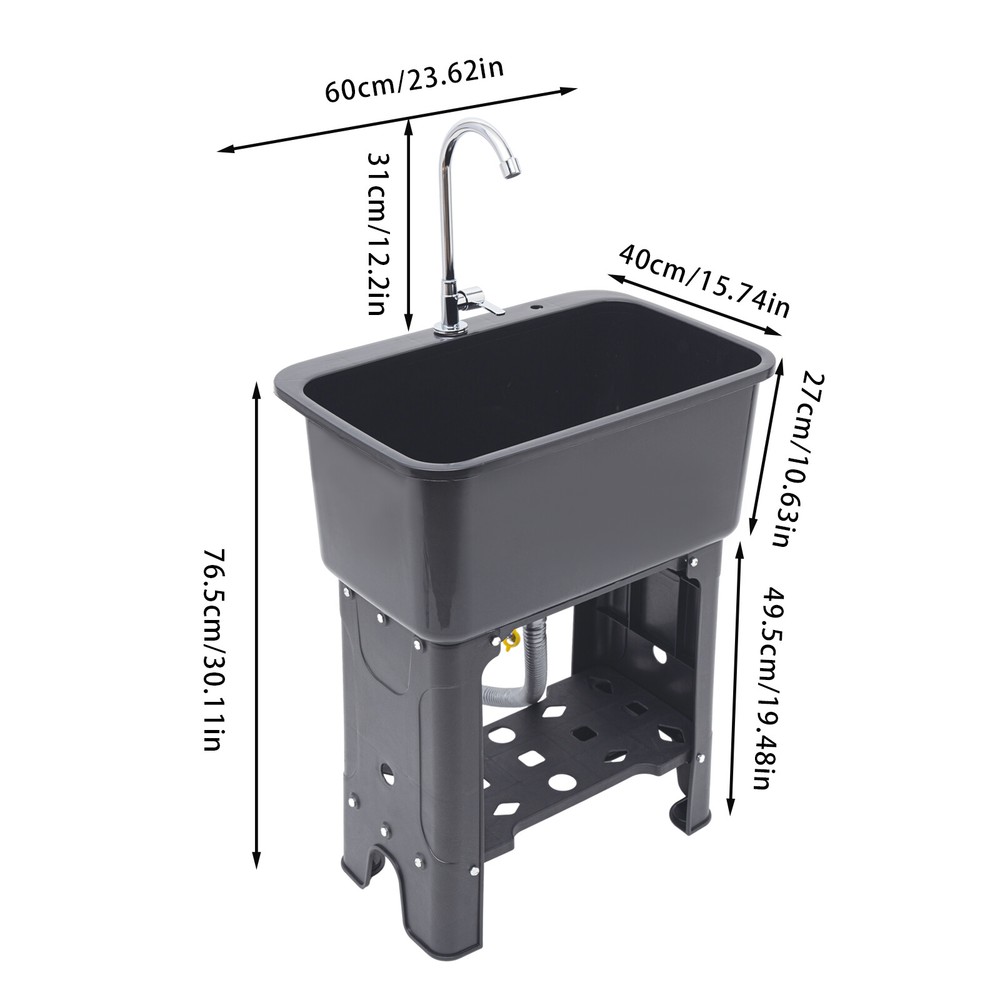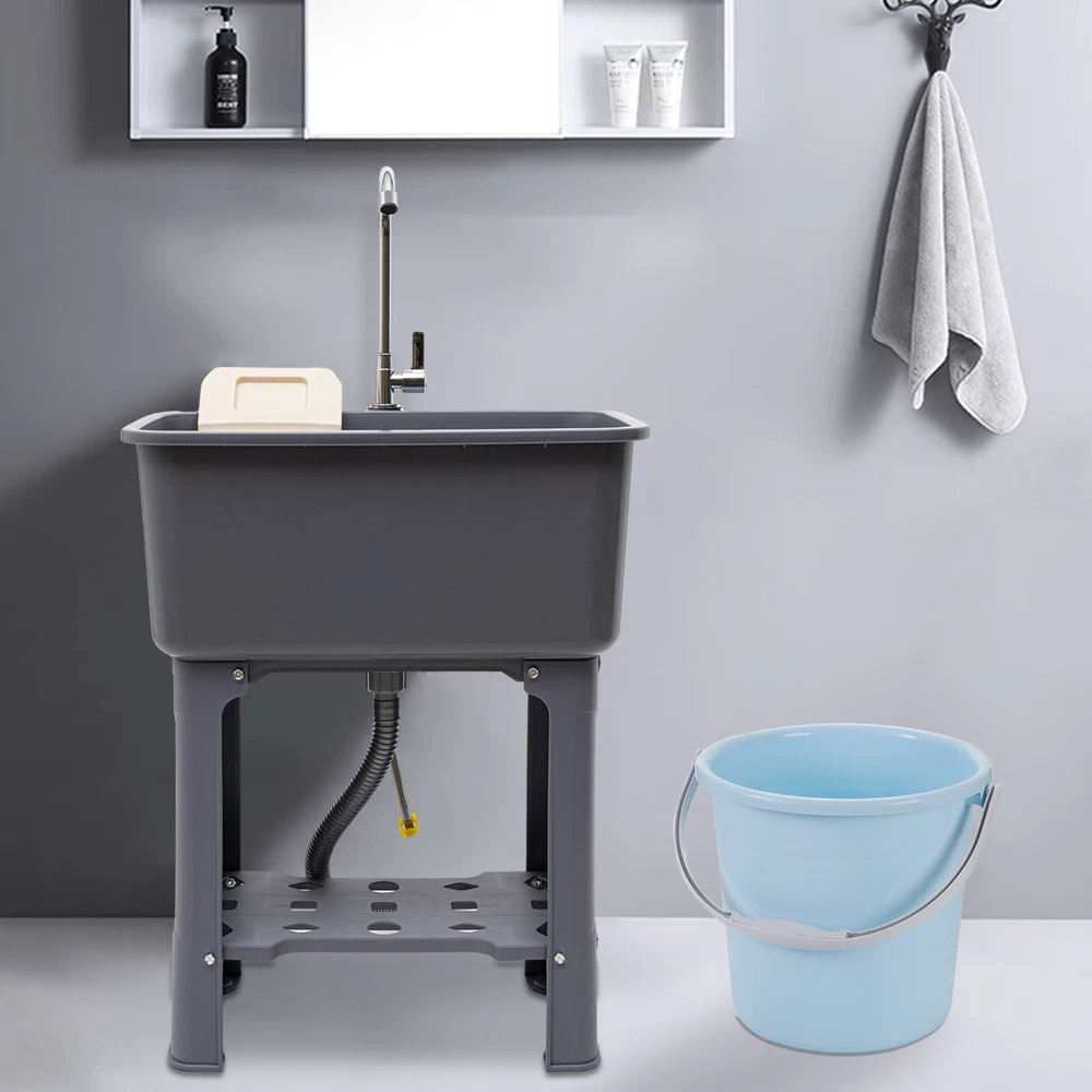 1-Compartment Utility Sink Laundry Freestanding Sink w/Faucet Washboard & Drain Description With its 360° rotating faucet and premium PP material, this freestanding utility sink is an excellent cleaning tool. Its deeper and larger sink reduces splashing while simultaneously making better use of available space. Meanwhile, it's easy to install thanks to its straightforward design and full complement of attachments. It's ideal for laundry rooms, baths, and minimalist kitchens because of its smart design and modern appearance. Key Features Beautiful Appearance: The gray color scheme gives the product a high-end and minimalist look, which can adapt to a variety of different decorating styles and add more stylishness to your room. User-friendly Design: The 30.12" overall height(not including the faucet) and 10.24" depth of the sink reduce the frequency of bending and the burden on your waist. High Stability: Thickened material, four supporting lage, stable rectangular structure, strong screw fixation, and reinforcing rib make its weight capacity up to 110.23 lbs, making the product more stable and safer to use. Build to Last: It is made of high-quality PP material and adopts an injection molding process, which makes the product wear-resistant, corrosion-resistant, sturdy and durable, and not easy to rust. Large Cleaning Space: The large inner size of the sink(22.05*12.6*10.24inches) allows you to clean large amounts of clothes and wash pet cats and dogs inside. Quick Drainage: The large-diameter drainage outlet(1.18inches), porous design, and long drain pipe(max. up to 30.31 inches) allow for faster and better water drainage without clogging. Complete Set: This complete sink kit includes a sink, a faucet, a drain pipe, a water inlet hose, a washboard, and a complete line of accessories, so you don't have to buy them separately, making it more economical and convenient. Easy to Install: Its simple structure, standard threaded connector, and complete installation accessories allow you to easily complete the installation in a short time. Effortless Cleaning: The smooth surface provided by high-quality materials and craftsmanship, and simple structure allow you to easily clean the dust with water and a soft towel! Details Washboard: The washboard with a soap slot has a tightly toothed surface pattern for better stain removal. Rounded Corner: The four corners of the sink are machined to be rounded for better protection from collisions. Anti-slip Feet: The wider non-slip feet increase the contact area with the ground and effectively play a non-slip role, thus providing more stable support for the product. Ample Bottom Space: You can put large bottles of laundry detergent, small baskets, washbasins, and other items in the bottom space to make smart use of space. Practical Faucet : This 360° rotatable high faucet with a comfortable handle allows you to easily adjust the water flow, achieve dead-end cleaning, and provide you with enough washing space and flexibility. Application It is suitable for cleaning clothes, pets, pots and pans, fruits, vegetables, meat, etc. in restaurants, laundries, stores, utility rooms, laboratories, canteens, cafes, gardens, warehouses, bars, dessert shops, garages, and other commercial places. Specifications Color: Gray Material: PP Style: Modern Process: Inject Molding Assembly Required: Yes Mounting Type: Freestanding Faucet Opening: Single Hole Faucet Single Hole Diameter: About 2.6cm/1.02in Base Type: Legs Number of Sinks: 1 Load-bearing Capacity: About 50kg/110.23lbs Drain Pipe Diameter: 3cm/1.18in Volume: 48L/12.68gal Faucet Adjustable Angle: 360° Water Inlet Pipe: 60cm/23.62in Drain Pipe Length: 77cm/30.31in Faucet Height: 31cm/12.2in Leg Height: 49.5cm/19.48in Sink Inner Size: 56*32*26cm/22.05*12.6*10.24in Overall Product Size(Not Including Faucet): 60*40*76.5cm/23.62*15.75*30.12in Gross Weight: 6.1kg/13.45lbs Net Weight: 5.5kg/12.13lbs Package Size: 61.5*41*31.5cm/24.21*16.14*12.4in Package Included 1*Utility Sink 1*Faucet 1*Washboard 1*Inlet Pipe 1*Drain Pipe All Accessories for Assembly Notes Please allow the slight color difference caused by the shooting light and 1-3cm error due to manual measurement, and make sure you do not mind before you order. Payment Delivery details Terms of sales About us Contact us Payment We accept ebay payment 。 Fees such as import duties, taxes are not included in the item price or shipping costs. These charges are the buyer's responsibility. Delivery details Shipping: 2-9 working days to: USA Terms of sales We maintain high standards of excellence and strive for hundred percent customer satisfaction. Feedback is very important to us. We hope that you contact us immediately before you give neutral or negative feedback, so that we can address your concerns. It is impossible to address issues if we do not know about them! About us Your satis faction is our ultimate goal. We work hard to earn your trust and future business. Our certified technicians have tested each item before shipping. The unit comes with 1 year limited warranty on all manufacturing defects. a) If you receive a defective item, you may return it or ask for a discount. Please contact us within 14 days after you receive the package. b) What you returned must be intact and in its original packaging as re? u. Customer is responsible for shipping costs of the returned item. c) We will cover the cost of shipping back t with the shipping rate indicated in the registration page. We will send you a new unit or refund the full payment you paid. Thank you. Contact us Business Hour Business Hour: Monday To Friday: 8:30 AM to 5:00 PM (Beijing China time) Due to time zones, our reply to your questions may not be immediately. But within above working time, we will reply your email within 24 hours. If it's non-workdays, please kindly be patient and wait till Monday. Please contact us with ebay message. Please feel free to contact us if you have any questions. Monday To Friday