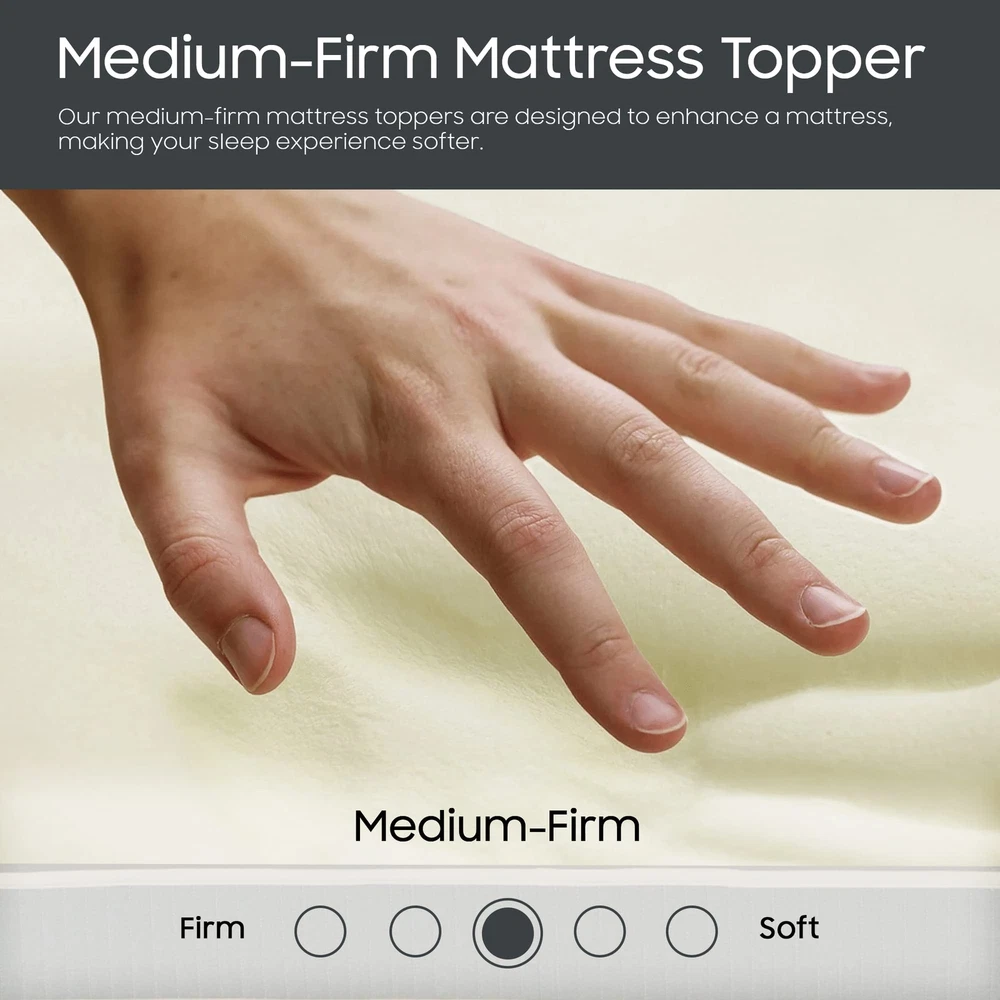 The premium foam adds luxurious softness while not taking away from the support of the mattress. These bed toppers have been effective in enhancing the comfort level of new and old mattresses alike, providing a better sleep experience for most people. This Convoluted Egg Shell Breathable Foam Topper is made from good quality foam that gently cradles you in individualized comfort and support. It also provides you with pressure-relieving cushioning in the hip and shoulder areas while still supplying enough support, so the body doesn't get imbalanced. These unique mattress toppers are to be used on top of your mattress for additional comfort. This prevents your body from sinking and curling while sleeping and promotes a better posture, which reduces and strain on your spine and increases energy levels during the day. Our premium-level mattresses are here to help you get the best possible comfort at all times when you sleep or lie down to relax. Comfort: A mattress topper can add an extra layer of comfort to your mattress, making it feel softer and more luxurious. This can be especially beneficial if you have a firm or uncomfortable mattress. Support: Toppers can provide additional support to your body while you sleep. This can help alleviate pain and pressure points and promote better alignment of your spine. CertiPUR-US certified foam: Rest easy knowing that the topper's foams are CertiPUR-US certified, meeting stringent standards for durability, performance, and content. Quality you can trust. Temperature regulation: Mattress toppers are designed to regulate temperature and keep you cool during the night. This can be especially beneficial if you tend to overheat while you sleep. Cost-effective: If you're not ready to invest in a new mattress, a mattress topper can be a cost-effective solution to improve your sleep experience. It's also easier to replace a topper than a mattress, which can be a more affordable option in the long run.