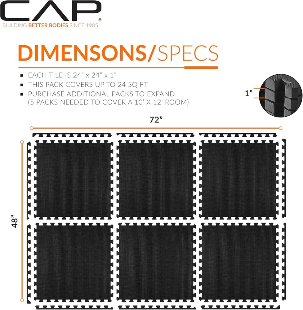 Type: Exercise Equipment Mats Material: Ethylene-vinyl acetate (EVA) Product Dimensions: 24"L x 24"W x 1"Th|Item Weight:7.49 Pounds|, Brand: Unbranded UPC: 702556040522 Product Care Instructions: Hand Wash Only Color: T Pattern - Black - 1- Pack - 6 tiles Item Weight: 7.49 Pounds gtin13: 702556040522 Item SIZE: 25.59 x 25.59 x 3.35 inches