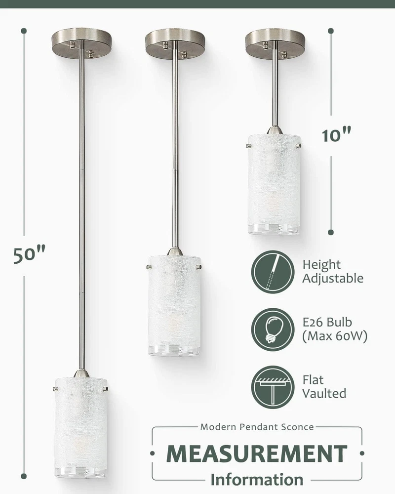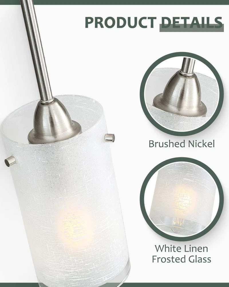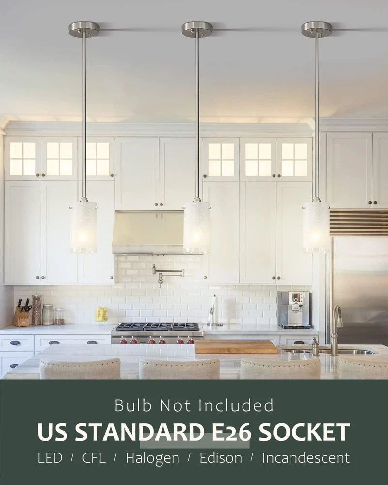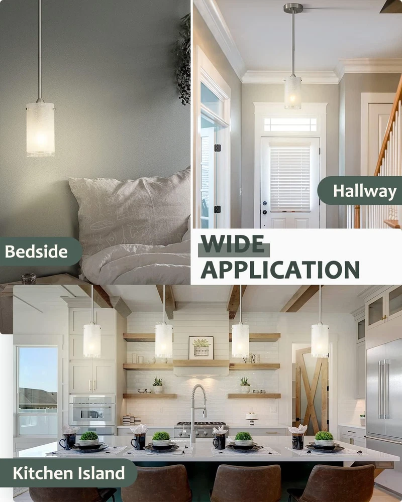 Store New Arrivals Add to Favorite View Feedback Contact 1-Light Mini Pendant Light Fixtures, Modern Chandelier Hanging Ceiling Light with White Frosted Shade, Brushed Nickel Pendant Lighting for Kitchen Bedroom Hallway, Adjustable Height, 2 Pack Description Item model number EIEPL02-2 Light Source Type Halogen, LED, Fluorescent, Incandescent Style Modern Number of Items 2 Power Source Corded Electric Fixture Type Non Removable Number of Light Sources 1 Control Method App Warranty Type Limited Lighting Method Downlight Maximum Compatible Wattage 60 Watts Controller Type Push Button Unit Count 2.0 Count Room Type Hallway, Kitchen, Bedroom, Dining Room, Dining Room Foyer Assembly Required Yes Product Dimensions 44"L x 44"W x 5"H Material Glass, Metal Installation Type Flush Mount Model Name White Linen Frost pendant light fixture 2 Pack Finish Type Brushed Specific Uses For Product Entryway, Lobby, Kitchen, Bathroom Basement, Bedroom, Living Room, Home Office, Hallway, Dining Room Indoor/Outdoor Usage Indoor Bulb Base E26 Country of Origin China Batteries Required? No Item Weight 4.14 pounds Light fixture form Ceiling Special Features Dimmable Special Feature Dimmable Part Number EIEPL02-2 Shade Color White Mounting Type Ceiling Mount Color White Frosted Glass Shade Wattage 60 watts Shape Pendant lighting Voltage 120 Volts Plug Format A- US style Shade Material Glass Finish types Brushed Included Components Shade Size 2 Count (Pack of 1) Height Adjustable: The adjustable silver cord ( maximum length 50'' ) can customize your different hanging needs, just need pull through the cord to the desired length compatible with sloped ceilings, slanted ceiling. This pendant lamp allow a variety of hanging heights White Frosted Glass Shade Design: This hanging ceiling light fixture combines brushed nickel finish metal fittings and white frosted cylinder glass lampshades, provide plenty of illumination. Perfect for bedroom, living room, dining room, coffee, kitchen, hallway, bar club, loft, and any living areas Flat/slope ceiling available: Our farmhouse brushed nickel mini pendant lighting can install it flexibly for bedroom, living room, dinging room, kitchen island, cafe, club, bar or restaurant Standard E26 Base: The silver chandelier hanging ceiling light fixture requires 2 x E26 medium base bulbs (Max 60W). Compatible with LED bulbs, CFL, incandescent, and halogen bulbs. Also, our pendant light is designed to be dimmable when used with a dimmable bulb and compatible dimmer switch (Bulbs and Dimmers Not Included) Easy Installation: This modern brushed nickel ceiling light fixtures come with all hardware. Just take a few minutes you can finish the installation Product Description Brush Nickle Pendant Light For Kitchen Island 2 Pack Brush Nickle Pendant Light For Kitchen Island 2 Pack Perfect for bedroom, dining room, living room, study room, bathroom, laundry room, entrances, hallway, entryway, stairwells, balcony, porch, etc, also ideal for commercial areas: bars, cafes, offices, hotels and restaurants. Brush Nickle Pendant Light For Kitchen Island 2 Pack Brush Nickle Pendant Light For Kitchen Island 2 Pack Brush Nickle Pendant Light For Kitchen Island 2 Pack Brush Nickle Pendant Light For Kitchen Island 2 Pack ABOUT US We offer the best prices around on high quality products. Our E-store includes media such as books, movies, music and games while offering electronics, toys, sporting apparel, clothing, tools, general home, garden items and more. SHIPPING We are always working hard to ensure your package arrives as soon as possible. Please understand that some factors like weather, high postal traffic, and the performance of shipping companies are outside of our control. We offer free shipping to the lower 48 states and ship within 2 business days of payment, usually sooner. We do not accept P.O. Boxes. Please provide a physical address. For shipping outside of the continental USA, we only use eBay's Global Shipping Program.The item is shipped to KY and then sent to the rest of the world. International customers are responsible for all duties and taxes. Continue to check out in order to calculate costs for shipping the item to your country. Messages regarding eBay's Global Shipping Program MUST be directed at eBay EXCLUSIVELY. RETURNS We offer a 30-Day Return Policy on items which you are not completely satisfied with. You have the option for a full-refund or an exchange of the item. No returns are available on items shipped outside of the USA. PAYMENT We accept PayPal. CONTACT US This page content is yet to come Please ad us to your favorite seller and visit again later Thank You CUSTOMER SATISFACTION We try our very best to make sure every customer is completely satisfied. If there's a problem, message us! We're happy to help. WE ACCEPT Copyright © 2021 AutoDS. | All Rights Reserved