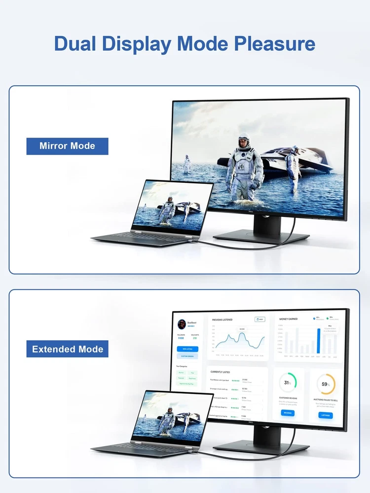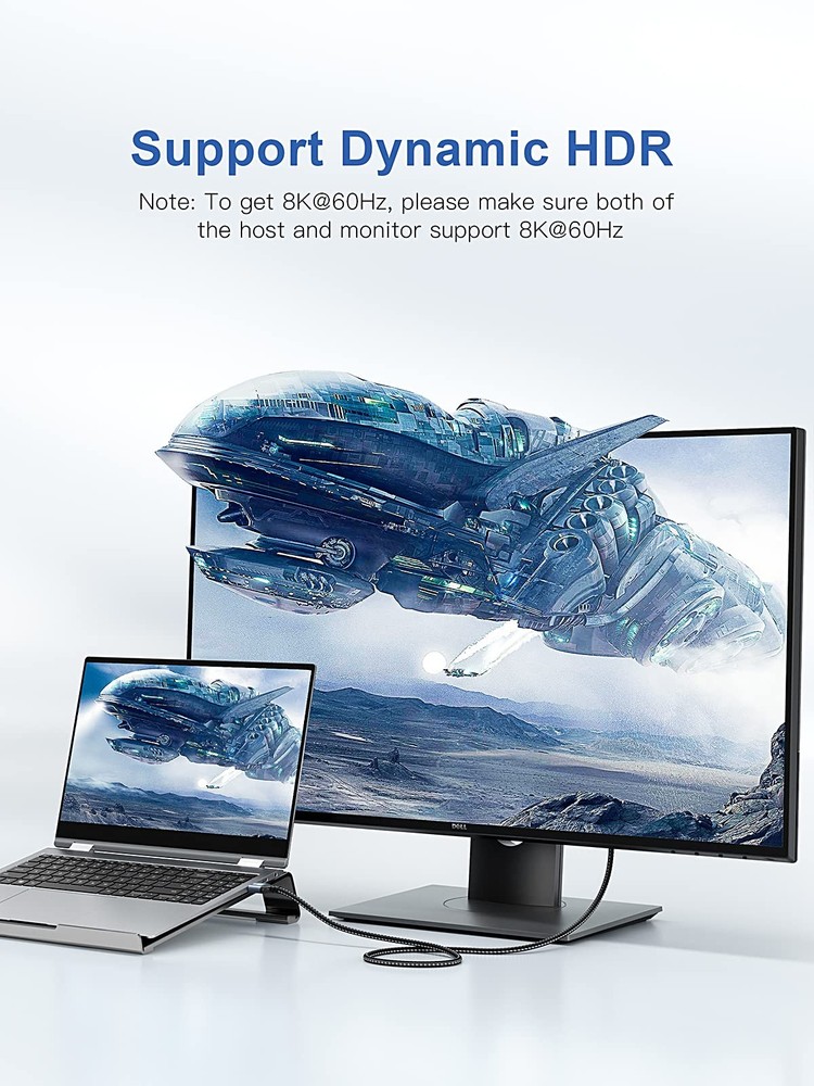 The birth of each high-quality cable is the crystallization of the hard work of 's strong engineering team. From the stylish of the appearance to the high-end durability of the material, it is controlled strictly. Only the items that have passed tens of thousands of performance tests will be put into the market and serve global customers! DisplayPort 1.4 is born for games, HDTV, large screen monitors and projector screens. In order to further meet your requirements for games, meeting, home theater, home officeand other scenes through external displays. - dp to dp 1.4 -Specifications: DisplayPort 1.4 Specs, 8K@60Hz -Connector Type: DisplayPort to DisplayPort (Both ports are NOT HDMI) -Backwards Compatible: DisplayPort 1.3 / 1.2 / 1.1 / 1.1a / 1.0 -Conductor Material: 32AWG Tinned Copper (Top material) -Bandwidth: HBR3 Rated, Supports up to 32.40 Gbit/s -Features: Supports HBR3 / HDCP 2.2 / HDCP1.4 / HDR / DPCP 1.0 / DP++ / Stereoscopic 3D video / Multi-stream transport (MST) / DSC -Supports: FEC Forward Error Correction and maximum 32 audio channels Note: please check the connector interface of your source and display devices (such as graphic card and monitor) before purchase, For 8K video support, it requires Both ports are DisplayPort. *For 8K video support, it requires both your computer and monitor have 8K video capacity. *This DisplayPort 1.4 cable supports 8K and is backward compatible with 5K / 4K / 2K / 1080p displays, ready to prepare for your future 8K displays. Refresh Rate: 8K (7680 x 4320) @ 60Hz / 30Hz 5K (5120 x 2880) @ 60Hz / 30Hz 4K (4096 x 2160) @ 144Hz / 120Hz/60Hz/30Hz 2K (2560 x 1440) @ 240Hz / 165Hz/144Hz/120Hz/60Hz/30Hz 1080p (1920 x 1080) @ 240Hz / 165Hz/144Hz/120Hz/60Hz/30Hz 【8K Ultra DP to DP 1.4 Cable】latest 8K DP Cable [NOTE: It is 2 display port male ends, NOT HDMI] supports high resolutions 8K(7680x4320)@60Hz, 5K(5120x2880)@60Hz, 4K@144Hz, 2K@240Hz, 1080P@240Hz, Dynamic HDR & HDCP 2.2. With 32.4Gbps data transmission speeds. DP 1.4 is the latest technology, which has qualitatively improved the visual experience of video, and is the mainstream trend in the future. 【Ideal for FreeSync/G-SYNC gaming monitors】The DisplayPort 1.4 Cable can provide higher bandwidth, HBR3 supports 32.4 Gbps of bandwidth. High refresh rate and high resolution, Maximize the performance of your graphics card and monitor, No motion blur, screen tearing or flickering. Dynamic HDR can optimize the game's dark picture and enhance the details, especially in FPS, 3A masterpieces and MOBA games, providing the best gaming experience for all game lovers. 【Great Choise for Quality Durability 】Display Port cable 1.4 is made of 32AWG tinned copper with triple shielding to ensure stable signal transmission. Tinplate plated connectors and Aluminum shell has stable heat dissipation while extending product life. The nylon braid design makes the cable more flexible and light to bend, preventing the cable from fraying. 【Widely Compatible】Compatible with all DP lower version compatible devices, and has higher bandwidth, refresh rate and better gaming experience. Compatible with Samsung odyssey G7 G9 CHG90 CRG9, Ben Q, Dell, LG, HP, ASUS, Acer, iiyama, Alienware monitors and others. Supports DP, DP++, and DisplayPort++.Works with graphics cards and monitors with display ports (do not use extensions or adapters, signal conversion degrades performance) 【Lifetime Exclusive Customer Service】 has a strong and professional team of engineers to solve the problems you encounter during the use of the product. Our products provide 24-month warranty service and exclusive customer service within 24 hours.