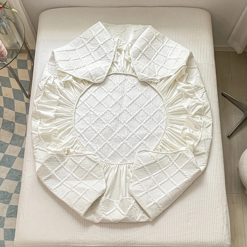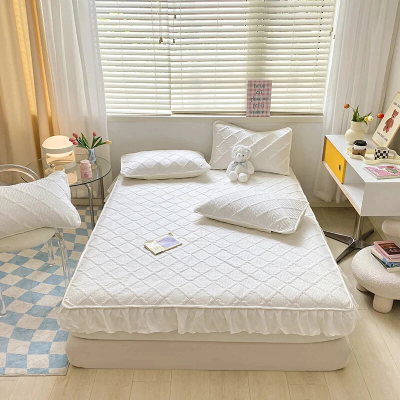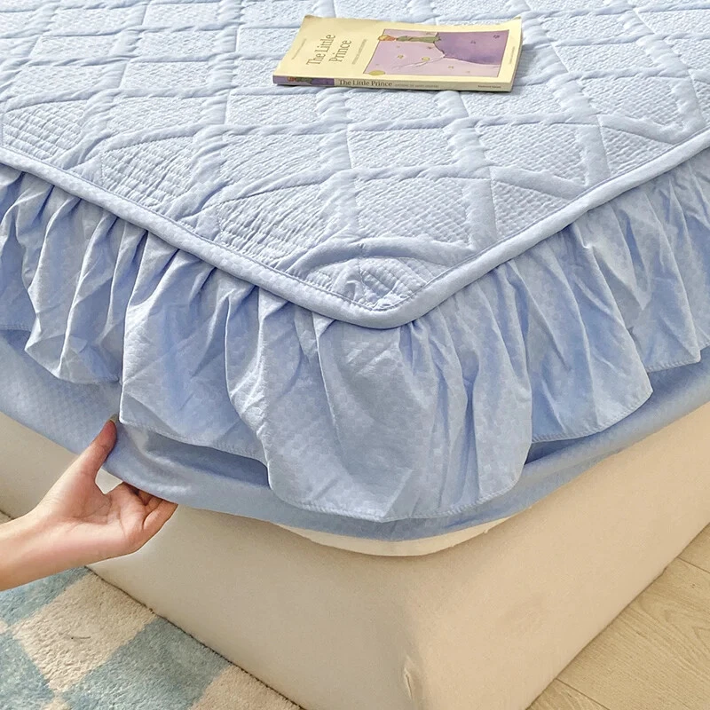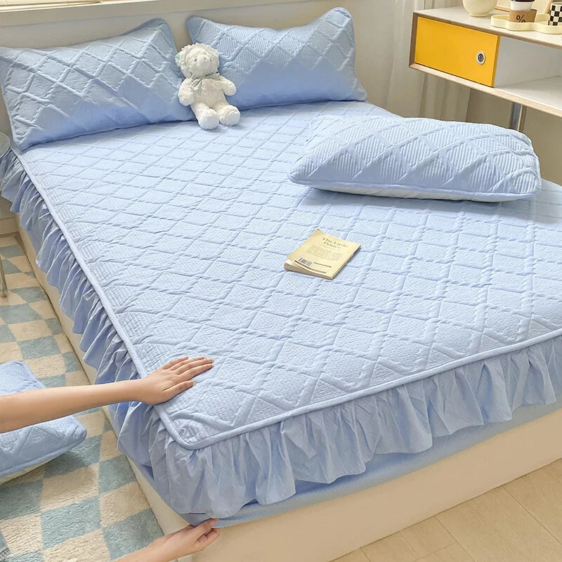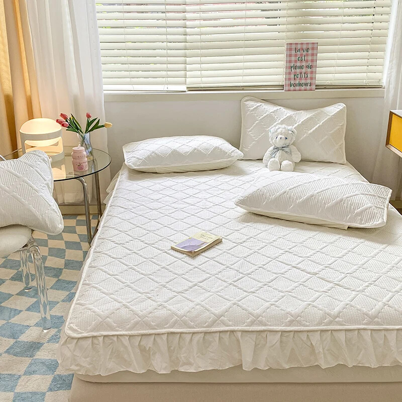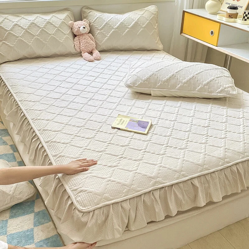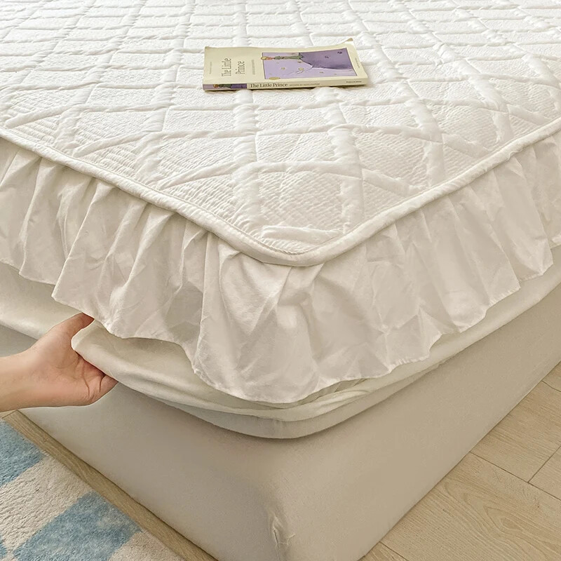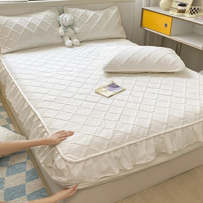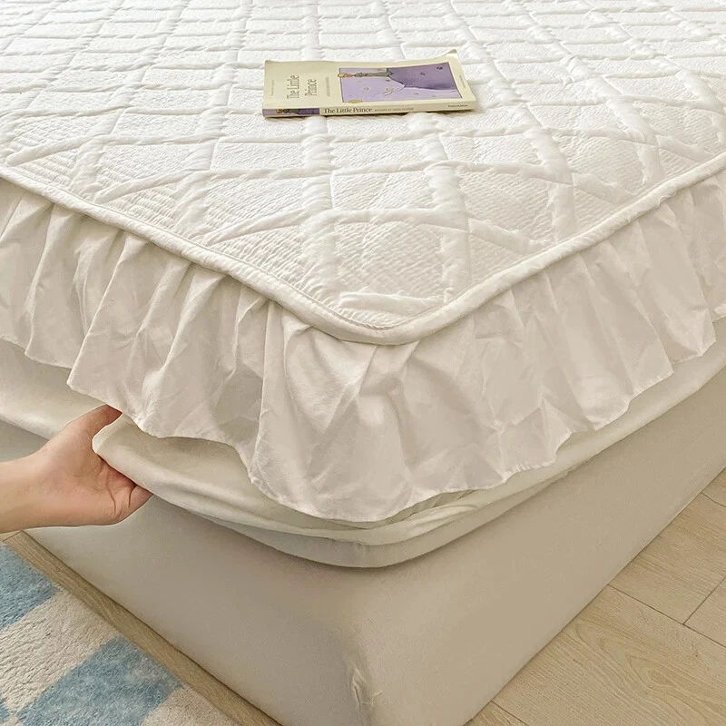1PC Double Thick Quilted Solid Color Elastic Mattress Cover with Wrap Around Design
