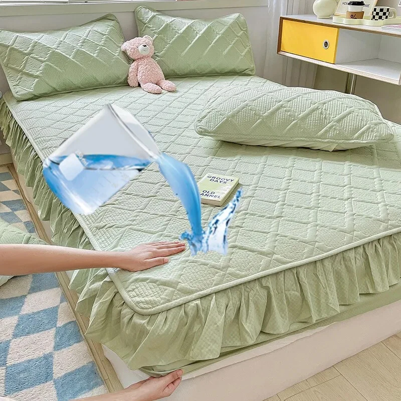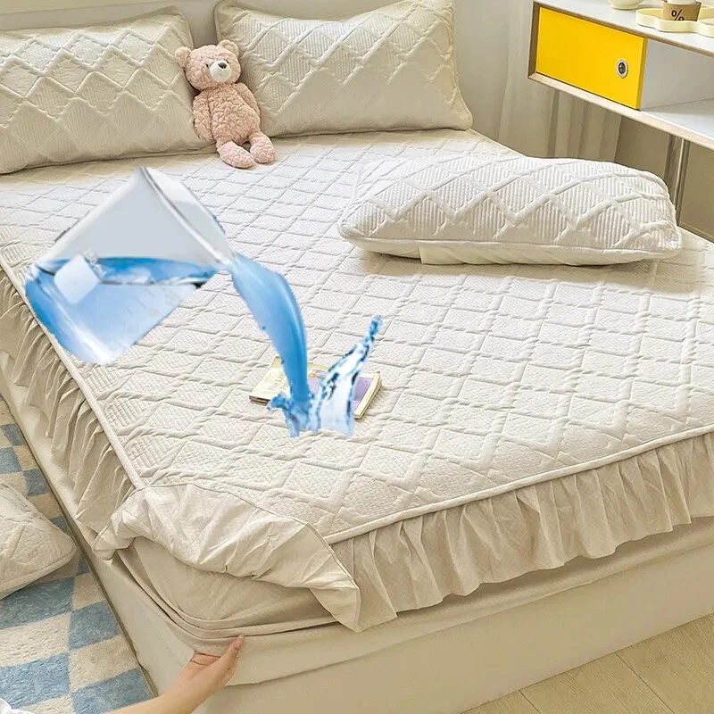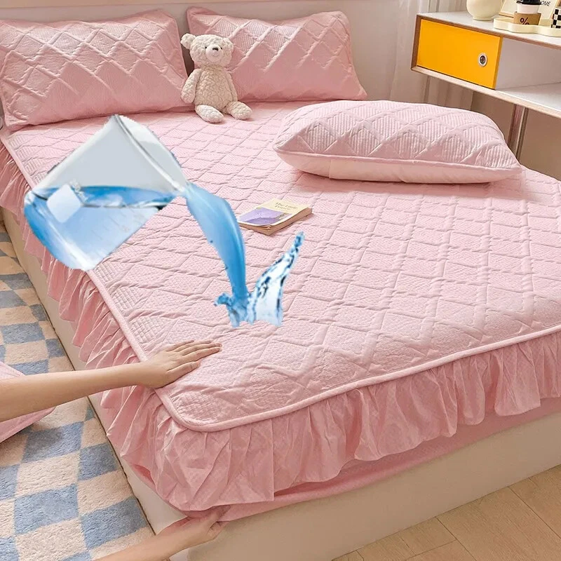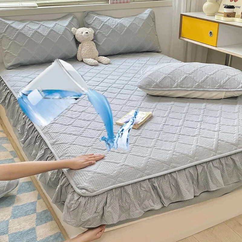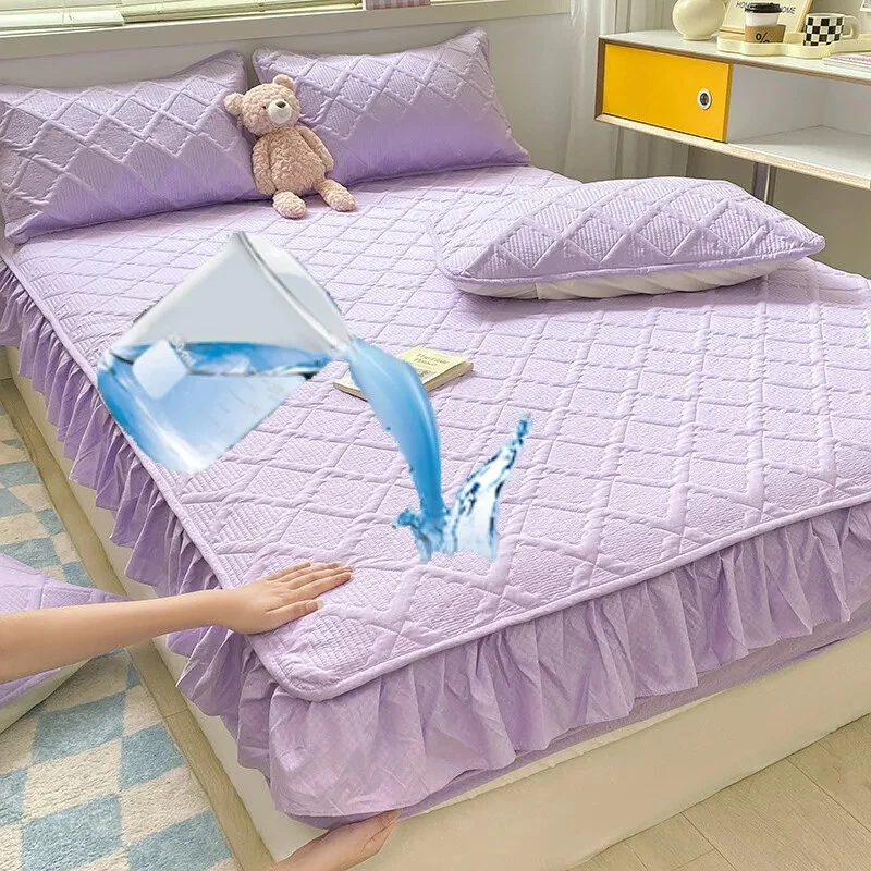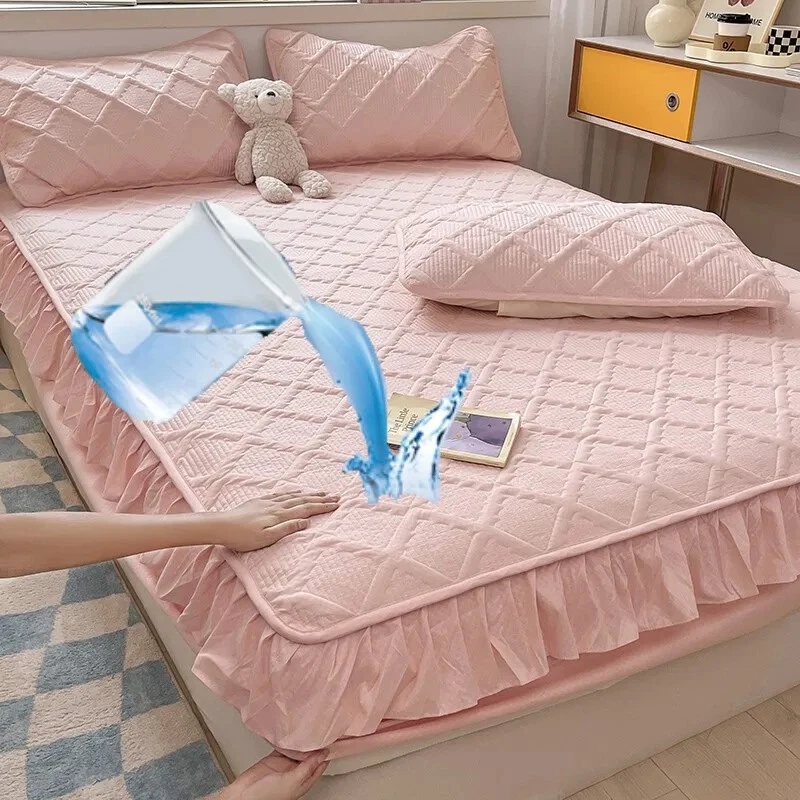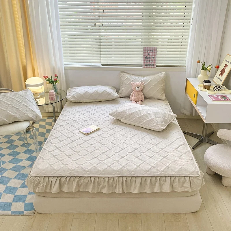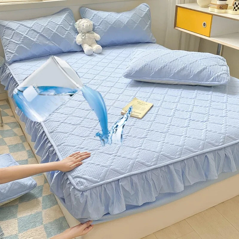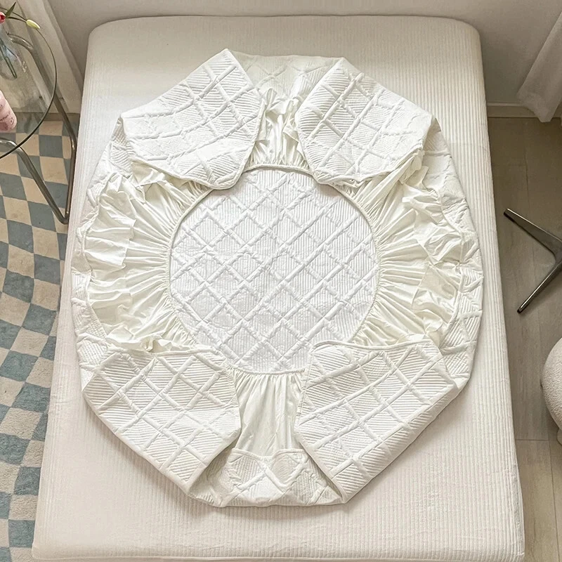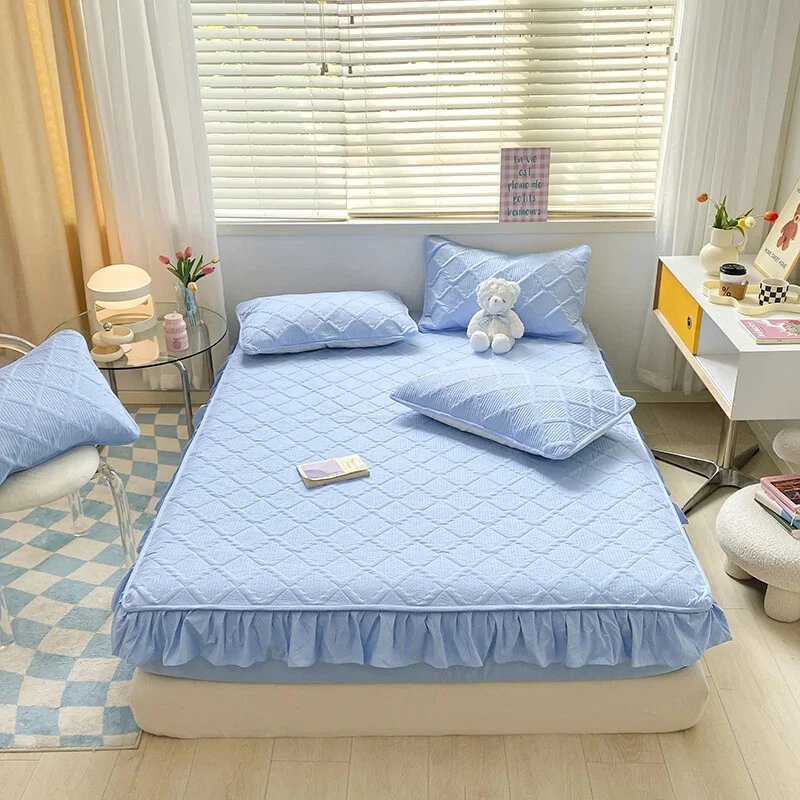 1PC Double Thick Quilted Solid Color Elastic Mattress Cover with Wrap Around Design