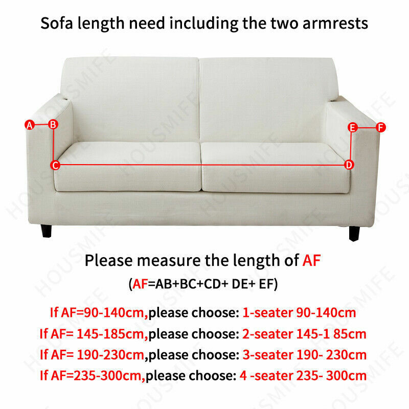 Features: 1. Selected quality fabric,sofa and comfortable,high elastic,breathable,durable 2. It is made of stretchable material,perfectly fits for most sofa 3. Reactive printing dyeing technology,healthy and environmentally friendly,not easy to fade 4. Easy to install and split,just cover the sofa, and insert foam bars into sofa gap,turn your old sofa into a new one in a few minutes. 5. Protect your sofa from stains,pet hair,damage and dust 6. Available in 4sizes,many color optional 7. Suitable for home,hotel and office and any need sofa place Specifications: Brand Name:Housmife Material:92% Polyester+8%Spandex Pattern:Modern Size: Single-seat sofa cover: suitable for sofa size 90-140 cm Double-seat sofa cover: suitable for sofa size 145-185 cm Three-seat sofa cover: suitable for sofa size 190-230 cm Four-seat sofa cover: suitable for sofa size 235-300 cm Applicable sofa: Armless sofa,Armrest sofa, L-shaped sofa, Sectional Sofa Please measure your sofa include armrest,then choose the size,if you don't measure it,the sofa cover will be smaller than your sofa. Package Includes : 1pc sofa cover Please attention ,the item is only the sofa cover ,not including the pillowcase . Please Note: 1. This sofa cover applicable to sofa which there is a gap,between seat with backrest and armrest.(Please make sure that your sofa has deep gap to slip the foam bars before purchase.Our sofa cover is not suitable for the sofa with shallow gap.) 2. Please measure your sofa include armrest,then choose the size,if you don't measure it,the sofa cover will be smaller than your sofa. 3. Manual measurement 1-3cm error is allowable,different country have different size,please check it before you buy. 4. Due to the long distance transportation problem,the product will be a little fold,it maybe not so flat as picture ,but dose not affect to use. 5. Since the difference between different monitors,the picture may not reflect the actual color of the item.We guarantee that the pattern is same as shown in the photos. 6. Which one you can't choose from color button,please contact us.