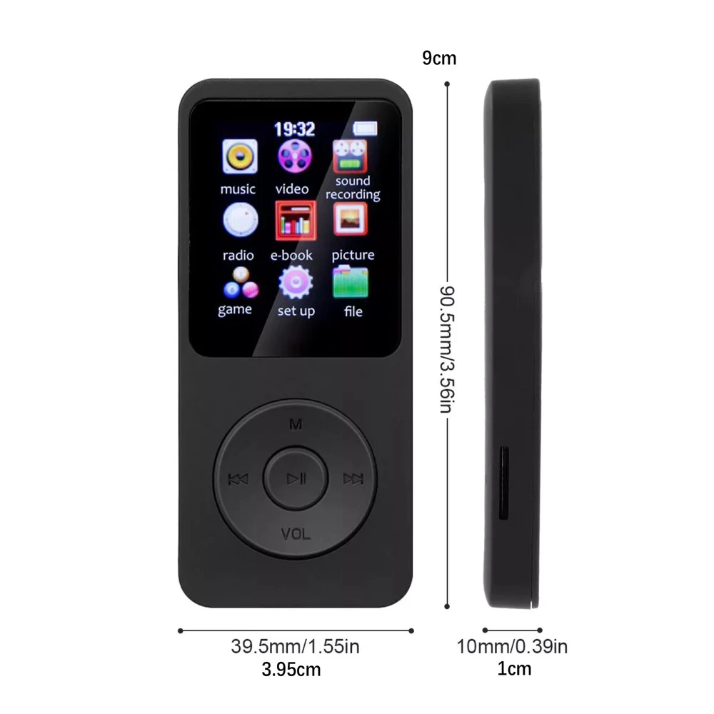 SAFE & SECURE SHOPPING 100% SATISFACTION GUARANTEED FAST SHIPPING Store Categories Store Categories You may also like 1PC New MP3 Player Bluetooth 5.0 HiFi Lossless Sound FM Radio Portable Stereo Product Description Features: Bluetooth 5.0 High-Speed Connection: This MP3 player supports Bluetooth 5.0, providing not only a more stable and faster wireless connection but also bidirectional transmission, making data transfer and reception more convenient. Whether pairing with headphones, speakers, or other Bluetooth devices, you can enjoy a seamless music experience. Multi-Function Integration: This player not only offers basic music playback functionality but also integrates recording, FM radio, e-book reading, picture browsing, and game console functions. Whether for study, work, or entertainment, it meets your diverse needs and enriches your life. HD Large Screen Display: Equipped with a 1.8-inch display screen, the operation interface is more intuitive and clear. Whether checking song lists, browsing pictures, or reading e-books, you can enjoy fine image quality and a comfortable visual experience. Large Capacity TF Card Expansion: Supporting up to 128GB of TF card expansion, you don't need to worry about insufficient storage space. Whether storing vast amounts of music, videos, or e-books, it can easily handle it, meeting your long-term storage needs. Long Battery Life and Portable Design: With a built-in 250mAh/3.7v lithium battery, it provides up to 6 hours of playback time, meeting your needs for extended use. Additionally, its compact and lightweight design makes this player ideal for carrying around, whether for outdoor sports, commuting, or travel, allowing you to enjoy music anytime, anywhere. Specifications: Material: ABS Size: 90.5*39.5*10mm / 3.56*1.55*0.39in Color: Black Interface: Type-C 5V/1A Charging time: About 2 hours Display: 1.8 inches Battery capacity: 250mAh/3.7v Battery life: 7 hours Bluetooth version: 5.0 TF card expansion: Up to 128GB (not included) Audio formats: APE, FLAC, MP3, WMA, WAV, AAC-LC Video format: AVI (128*160) Recording format: WAV Image formats: supports JPG/JPEG/BMP E-book format: TXT documents Package Included: 1 x MP3 Player 1 x Type-c Cable Payment Shipping Returns Contact Us Payment We accept all verified payment from eBay. Shipping 1. Items sent from US warehouse. 2.Receiving time = Processing time + Shipping time. 3. Processing Time: Around 1-2 business Days. 4. Shipping Time: 3-5 business day. it may have a little delay during some holiday (such as Christmas),any problem ,please feel free to contact. Returns 1. 30 days warranty from the purchased date. Please contact us via email before returning the defective item. 2.Our warranty does not extended to any product that are physically damaged or that are not under normal operating conditions as result of misuse or improper installation on the buyer/user's part. 3.Return items should include the original packaging and all accessories. buyers MUST contact us for the returning address. 4.In all cases, buyers pay shipping fees at their own cost to return products for exchange or refund. We will be responsible for the postage of replacements. Refund will be made upon receipt of the returned item. Contact Us Pls contact us if you have any problems,we will try our best to solve for you. Copyright © 2022 Tongtool