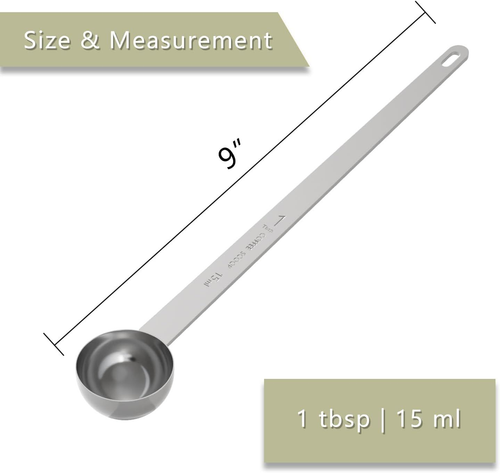 1PCS 1 Tablespoon Coffee Scoop, 9" Long Handle Measuring Spoon, One tbsp (15 ml) Stainless Steel Scooper Product Details Is Dishwasher Safe: Yes Capacity: 15 Milliliters Manufacturer: LEIFENY Product Dimensions: 9 x 1.4 x 0.1 inches Item Weight: 1.76 ounces Item model number: AWAU0M59U Color: Silver Material: Stainless Steel Brand: LEIFENY Product Dimensions: 9"L x 1.4"W Item Weight: 0.05 Kilograms 【Precision in Measurement】 Our coffee scoop ensures the perfect cup every time with its precise 1 tbsp | 15ml capacity. Achieve consistent coffee strength and flavor with confidence. 【Extra Long Handle】At 9 inches, this scooper is designed to reach the depths of your coffee containers effortlessly. The polished stainless steel surface not only ensures a sleek appearance but also provides a satisfyingly smooth touch. Elevate your coffee-making experience, making the coffee scooping process effortless and enjoyable. 【Easy to Clean】 Designed for your convenience, our coffee scoop is easy to clean, preventing any coffee residue buildup. Its stainless steel material ensures a quick and hassle-free cleanup, and it's dishwasher-safe for added convenience. 【Versatile and Stylish】 Beyond just measuring coffee, this scoop's versatile design makes it a multifunctional kitchen tool. Its sleek and stylish appearance adds a touch of elegance to your kitchen, making it a must-have for coffee enthusiasts and culinary aficionados alike.