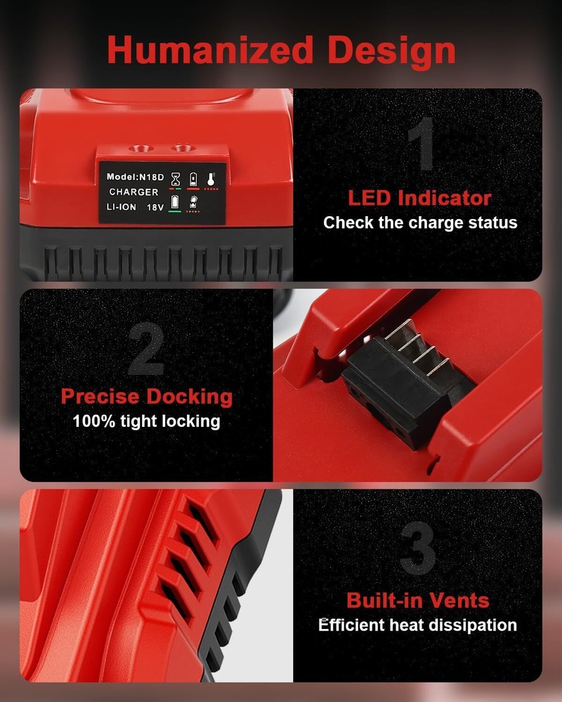Package include: 5000mAh Battery (1-Pack) Replacement for Milwaukee m-18 Battery. 1 Multi-Voltage Battery Charger 48-59-1801 for Milwaukee 18v battery Battery is compatible with all tools in the M-18 line. Upgraded Extended-capacity 5.0Ah / 18V High-Output Lithium Li-ion battery runs for a long time between charges Multi-Voltage Charger for All 18V Milwaukee M-18 Lithium-ion Battery Batteries. Replacement for Milwaukee 18V battery charger. Fuel gauge onboard: Displays remaining runtime for less downtime on the job. All-weather performance: Delivers fade free power in extreme job site conditions. 1-Pack 18V 5.0Ah Replacement for Milwaukee M-18 Battery and 1 Charger (Red) Package include: 5000mAh Battery (1-Pack) Replacement for Milwaukee m-18 Battery. 1 Multi-Voltage Battery Charger 48-59-1801 for Milwaukee 18v battery Battery is compatible with all tools in the M-18 line. Upgraded Extended-capacity 5.0Ah / 18V High-Output Lithium Li-ion battery runs for a long time between charges Multi-Voltage Charger for All 18V Milwaukee M-18 Lithium-ion Battery Batteries. Replacement for Milwaukee 18V battery charger. Fuel gauge onboard: Displays remaining runtime for less downtime on the job. All-weather performance: Delivers fade free power in extreme job site conditions. Friendly Consumer Sevice:30days Free return and replacement. For any question, click "Ask a question" on our storefront, or click "contact seller" in "Your Order" options. This Item1-Pack 18V 5.0Ah Replacement for Milwaukee M-18 Battery and 1 Charger (Red)RecommendationsEndfalent 2-Pack 18V 6.5Ah Replacement for Milwaukee M-18 Battery and 1 Charger(red)TOMORTOOL 2-Pack 18V 6.5Ah Replacement for Milwaukee M-18 Battery and 1 Charger(red)2 Pack 18V 6.5Ah Battery and 18V Battery Charger Compatible with Milwaukee m18 Batteries 48-11-1820 48-11-1830 48-1840 48-11-1850 48-11-1860TOMAPEX 6.5Ah 18V Battery Replacement 2Pack for Milwaukee m-18 Battery and Charger Station Set, Compatible with Milwaukee 18V Cordless Power Tools18V 6.0Ah Battery Rapid Charger Combo Kit Replacement for Milwaukee 18V Battery and Charger 4811-1862 4811-1852 4811-1840 4811-1830 4811-1811 4811-1815 4811-1820 4811-1841 Add to cart Add to cart Add to cart Add to cart Add to cart Add to cart Price$56.99$56.99$85.99$85.99$85.99$85.99$84.99$84.99$79.99$79.99-6%$65.99$65.99 List:$69.98DeliveryGet it as soon as Friday, Feb 28 Get it as soon as Friday, Feb 28 Get it as soon as Friday, Feb 28 Get it as soon as Friday, Feb 28 Get it as soon as Friday, Feb 28 Get it as soon as Friday, Feb 28 Customer Ratings4.24.2 out of 5 stars364.64.6 out of 5 stars374.44.4 out of 5 stars734.74.7 out of 5 stars254.54.5 out of 5 stars103.93.9 out of 5 stars60Sold By LEOZDD SunLie Makereal Komifolen Store HeShen Direct WECACHWEoutput voltage — 18 volts of direct current 18 volts 18 volts 18 volts of direct current 18 voltsinput voltage 18 volts 18 volts 18 volts — — 18 volts Replacement for Milwaukee M18 battery: 48-11-1852 / 48-11-1850 / 48-11-1840 / 48-11-1890 / 48-11-1828 / 48-11-1820 / 48-11-1811 / 48-11-1815 / 48-11-1820 / 48-11-1822 / 48-11- 1841 / 48-59-181 / 48-59-1850 / 4932352071 / 4932430063 / C18B / Li18 / M18 / M18B / M18B2 / M18B4 / M18BX ... Compatible with Milwaukee M18 18V Lithium Battery Charger: 48-59-1812 / 48-59-1808 / 48-59-1806 / 48-59-1807 / 48-59-1810 ... Compatible with Milwaukee 18V Cordlesss Power Tools: M18 / 2646-22CT / 2643-21CT / 2641-21CT / 2646-21CT / 2646-20 / 2642-21CT / 2641-20 / 2729-22 / 2629-22 / 2729-20 / 2729-21 2629-20 / 2706-22 / 2705-20 / 2705-22 / 2704-20 / 2787-22 / 2702-20 / 2701-20 / 2656-22CT / 2707-22 / 2708-22 / 2607-22 2707-20 / 2708-20 / 2607-22CT / 2607-20 / 2603-20 / 2603-22 / 2615-21CT / 2615-21 / 2606-22CT / 2604-22 / 2604-20 ... 1 Pack * Charger Replacement for Milwaukee 18V battery charger 2 Pack * 5.0AH Replacement for Milwaukee 18V Battery Warning: DO NOTCharge the battery more than 6 hours, if you do that, the battery will dead. DO NOT charge other batteries. The battery charger is suitable on for charging matched 18V lithium-ion batteries within the listed voltage range. Otherwise there is danger fire Disconnect charger from the power supply when not in use. Disconnect the battery when not in use. Aoasur Tool Battery Charger Battery Charger + Battery Aoasur Tool Battery Aoasur Tool Battery Aoasur Tool Battery 5.0Ah High Capacity Replacement for Milwaukee M-18 battery Product Specification: Item Specifics Brand Aoasur About us Dear buyer, Thank you for visiting my store! Our warehouses are located in many regions around the United States. According to the customer's delivery address. Use USPS/UPS/DHL logistics transportation service. Prioritize the best quality logistics solutions to transport packages. Ensure package delivery time, At the same time. Have any after-sales problems, Feel free to contact us. At your service Payment PayPal is our preferred method of payments it's the quickest, easiest and most secure way to pay for your goods or services online. PayPal offers buyer and seller protection should there be a problem. If you do not have a PayPal account, to get started and buy your first item with us is very easy. Simply click on the 'Buy It Now' button and follow the eBay checkout steps. Select PayPal as the payment method you then will be given the chance to enter your card details in to PayPal's secure checkout in order to pay for your order. Shipping 1. Your purchase is shipped directly to you as soon as we have received your cleared payment. 2. Normally all of parcels would be shipped within 3days(From Monday to Saturday). 3. We will send information on eBay or email if the parcel was delayed due to our holiday. 4. We provide three kinds of shipping for choice. Shipping way depend on delivery address. Returns If an unit is received defective, of course we take it back or replace it. If the unit is received as expected, we must charge for our expenses if you want to send it back. We have to charge for the work of