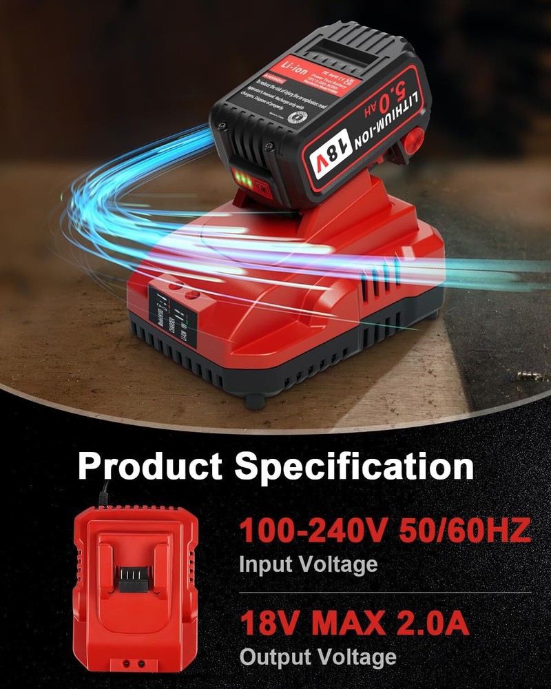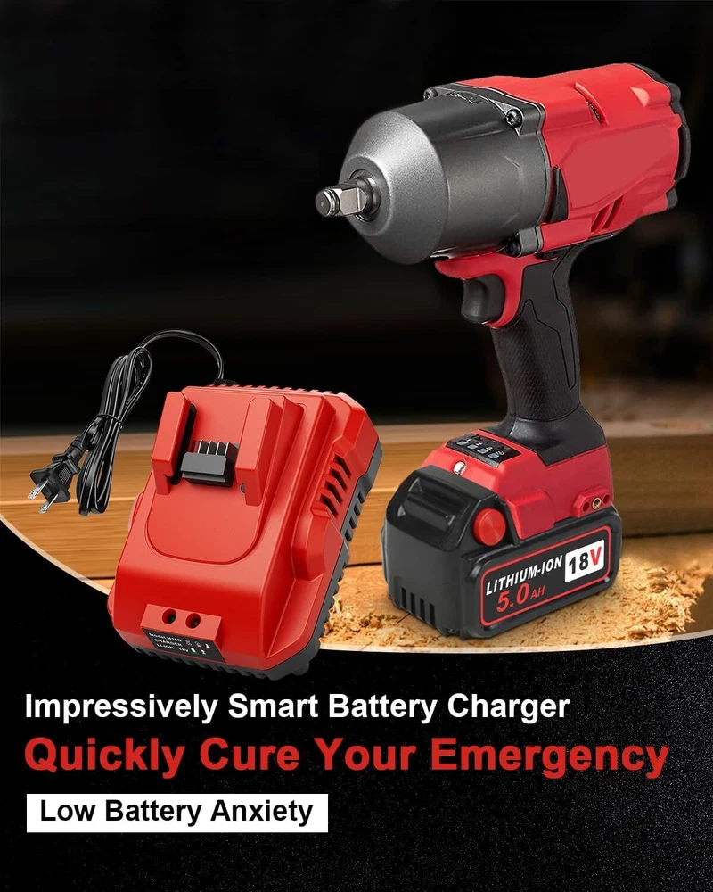 1-Pack 18V 5.0Ah Milwaukee M-18 Battery Replacement with Charger in Red