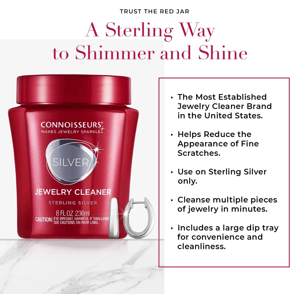 1Pack Connoisseurs Silver Jewelry Cleaner, Liquid Dip Jewelry Cleaner in Red Jar Product details Connoisseurs Silver Jewelry Cleaner instantly removes tarnish and restores shine and brilliance to sterling silver jewelry in just 30 seconds. No brushing needed. Ammonia-Free. 8 FL. OZ. (236 ml) Dip tray included. Connoisseurs Silver Jewelry Cleaner is a fast, convenient way to clean sterling silver jewelry. Instantly clean, remove tarnish and restore the shine and brilliance to sterling silver jewelry in just 10 seconds. Sterling Silver jewelry can lose its beautiful luster and shine when exposed to air and other impurities such as skin oils, lotions, perfumes and hairspray. Tarnish can make your silver jewelry look dark in color and dull in appearance. Our liquid dip formula will remove the tarnish and bring it back to its original beauty. To keep your silver jewelry looking its best regular cleaning is recommended. Not for use on gemstones, painted or antiqued or plated pieces and any other type of metal. Ammonia-Free. 8 Fl. Oz. Dip tray included. • Formulated to remove tarnish from silver without extra cleaning step • Dip tray prevents fingers from getting wet • Just dip jewelry and instantly see results • No need to brush jewelry • Removes tarnish in just 10 seconds • Only for use with STERLING silver jewelry • Ammonia Free, 8 fl.oz Shipping Policy FREE SHIPPING in all orders! Orders are usually processed and shipped out after 72 HOURS during BUSINESS DAYS (Monday to Friday) after payment has been received. But please be reminded that we are NOT processing and shipping orders during WEEKENDS and HOLIDAYS. Please make sure your ADDRESS is VALID for both UPS and USPS COURIER SERVICES. Please be reminded that costs incurred due to INCORRECT or UNDELIVERABLE ADDRESS should be shouldered by the buyer. The shipping services that we use are UPS, FedEx, USPS etc. We ONLY ship to the 48 STATES, NO APO/FPO ADDRESSES or PO BOXES. We DO NOT ship to warehouse, freight company. Local pickups and combined shipping options are NOT provided at this time. Return Policy DOMESTIC RETURN ACCEPTED - 30 DAYS. Contact us for more information. Payment Policy We accept payment by any of the following methods: PayPal Items can be returned for exchange or full refund WITHIN 30 DAYS from the date you receive your merchandise. We are not responsible for any purchase after this 30-day period. Feedback & Contact Us Customer satisfaction is very important to us. If you have any problem with your order, please contact us and we will do our best to make you satisfied. If you have any queries, please contact us via Ebay. We usually respond within 24 hours on weekdays. Thank you for shopping at our store.
