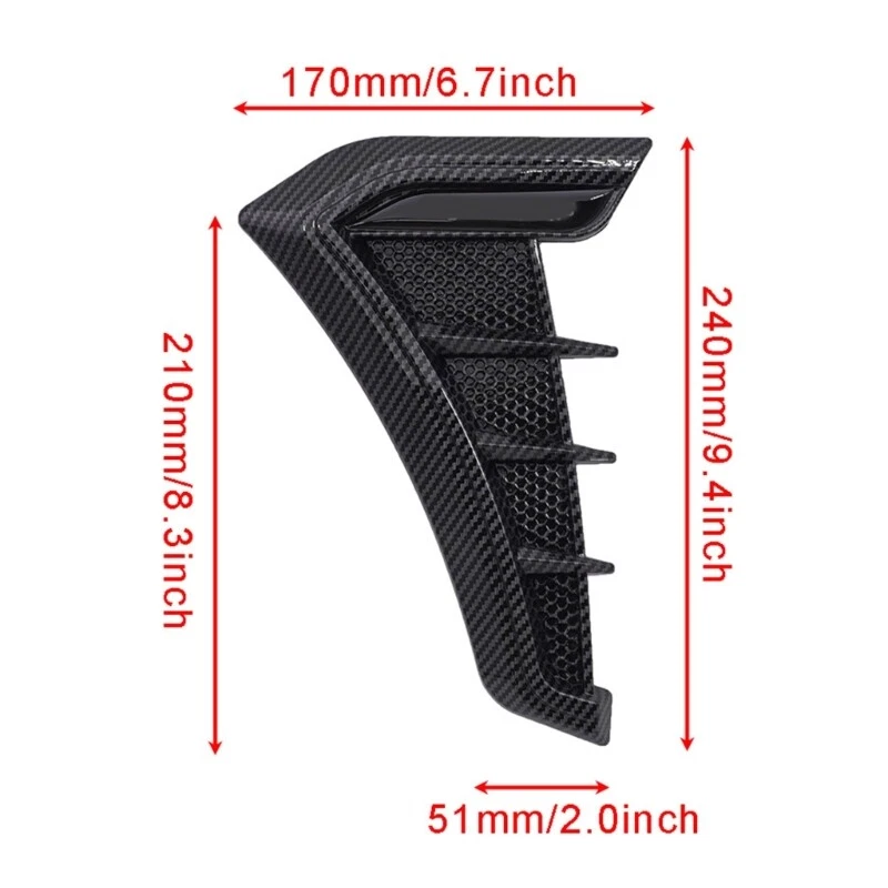 1Pair Car Side Air Wing Vents Front Sticker Trim Cover Case Universals Features: Transform your vehicle's appearance with the car side vents. Suitable for various car model, this board add a touch of personalization and sportiness to your ride. Adopt TPU rubber, this board is to water and dirt, ensuring it keepings in great condition over time. for car enthusiasts who love customizing their vehicles and creating a unique exteriors look. This car trim allows you to showcases your Whether you're driving in your daily commute and attending a car exhibition, the car trim is for enhancing your vehicle's appearance. Stands out from others and catch attention wherever you go. Upgraded your vehicle's exteriors with the practical and eye catching car trim. Its easy installation and wide compatibility makings it a popular choice among car owners and automobile expert. Specifications: TPU Color:Black,Carbon Fibers Package Includes: 1Pair Car Side Vents note: Please allow 1mm errors due to manual measurement. Due to the difference between different monitors, the picture may not reflect the actual color of the item.