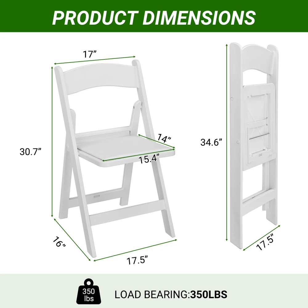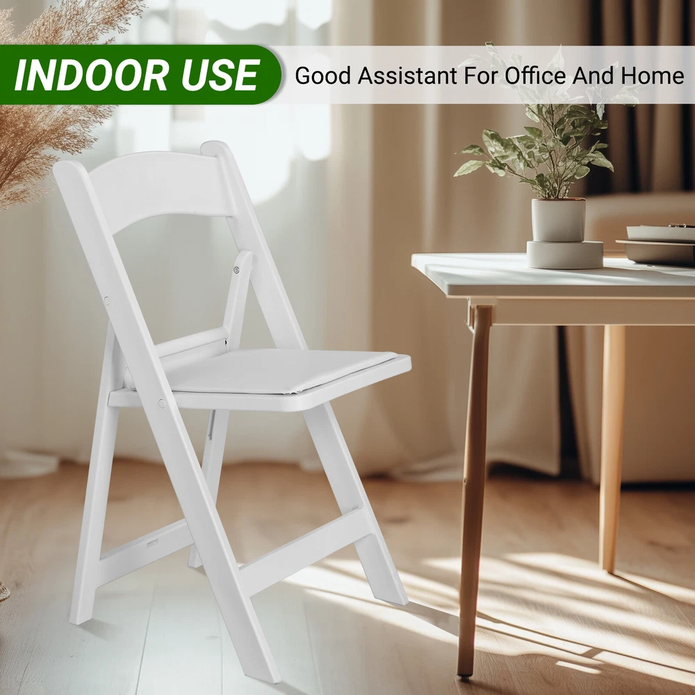 Introductions: Experience the perfect blend of comfort and portability with our Folding Chair with Padded Seat. Featuring an ergonomic design and soft PVC leather cushions, these chairs ensure lasting comfort even during long events. Their foldable design allows for easy storage and transport, making them an ideal choice for family gatherings, outdoor camping, weddings, and more. Crafted from durable, weather-resistant materials, these stylish chairs are perfect for both indoor and outdoor use, offering a versatile seating solution for any occasion. Features: 1. Exceptional Comfort: With ergonomic seat and backrest, complemented by soft PVC leather cushions, these chairs are perfect for long hours of sitting, ensuring your guests remain comfortable throughout any event. 2. Effortless Storage and Transport: The folding design allows the chair to open and close in seconds, making storage and transportation a breeze. Whether you're hosting a family gathering, going camping, or planning a celebration, these lightweight chairs are easy to carry and store. 3. Weather-Resistant Durability: Constructed from waterproof and moisture-proof resin material, these chairs offer long-lasting use both indoors and outdoors. 4. Robust Triangular Structure: Engineered to meet the needs of different body shapes, these chairs provide outstanding stability and each chair supports up to 280 lbs. 5. Versatile and Stylish Design: With a simplistic modern appearance, these chairs enhance any setting. Perfect for decorating your garden, embellishing your balcony, or adding elegance to indoor and outdoor events like weddings and church functions. Specifications: 1. Material: PP, Pearl Cotton, PVC Leather 2. Color: White 3. Product Dimensions: (17.5 x 17.1 x 30.7) in / (44.5 x 43.5 x 78) cm 4. Net Weight: 10.6 lbs / 4.8 kg Package Includes: 1 x Folding Chair