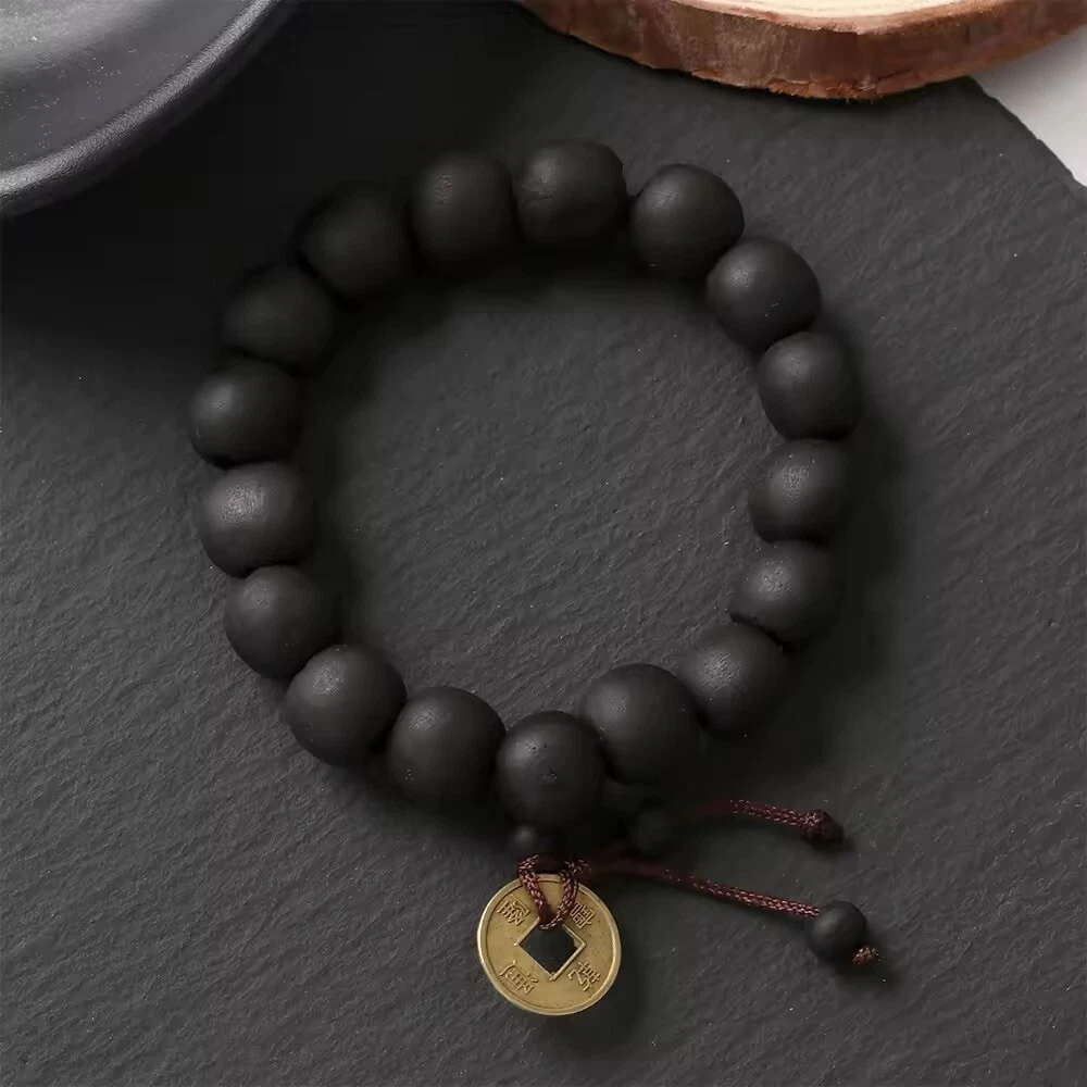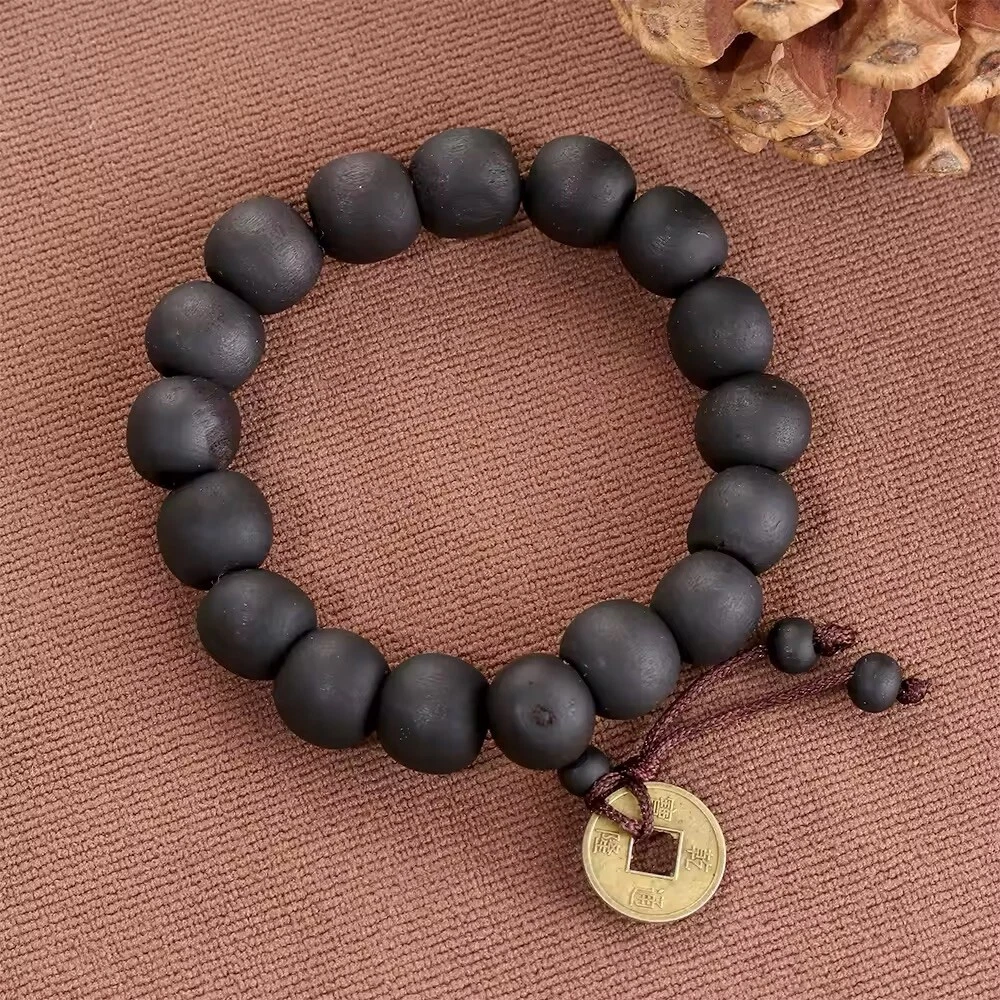 1Pc Wood Bead New Buddha Bracelet Buddhist Bangle Prayer Beads Copper Coin