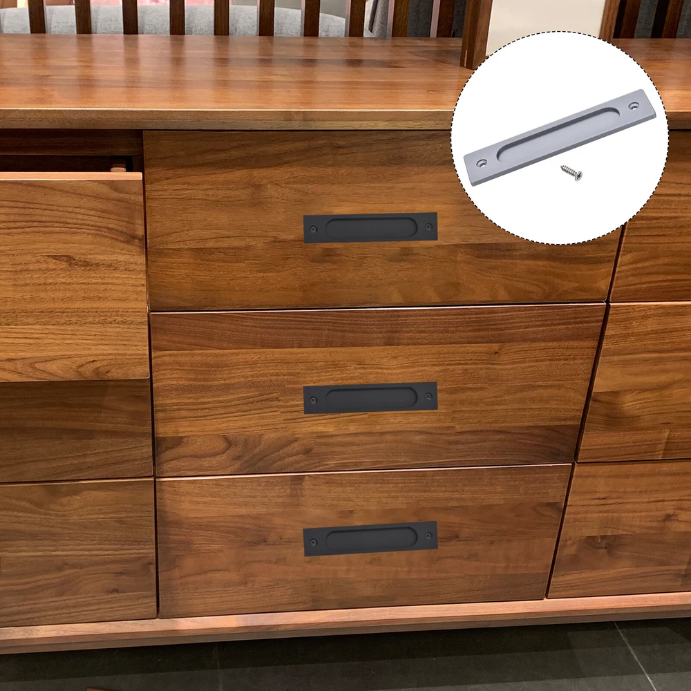 1Pcs 180mm Sliding Door Finger Handle Zinc Alloy w Screw Grey Rectangle