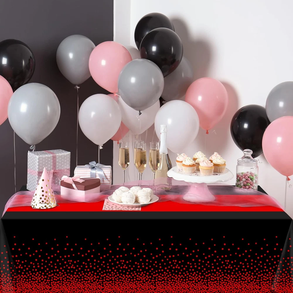 1Pcs Black and Red Tablecloth Party Decorations,Plastic Black Table Cloth Printe