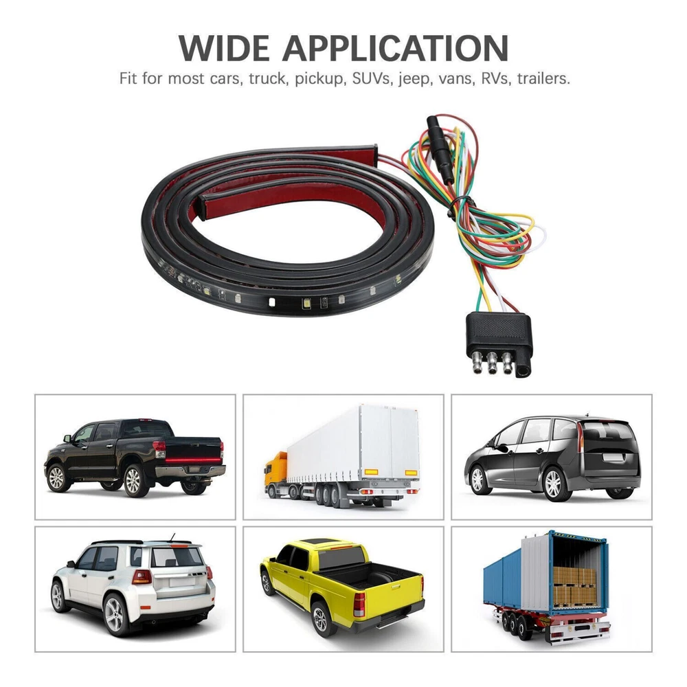 Product Description 1Pcs For Chevy Car Truck 60" LED Strip Tailgate Light Bar Reverse Brake Signal Features: 1.Universal Fit for most trucks, SUV, For Jeeps, and RV. 2.Good quality, good operation. 3.Fully sealed waterproof design. 4.Low power consumption and ultra-long life. 5.Plug and play standard 4PIN connector. No need to change any lines. Specifications: 100% Brand new and waterproof Voltage: DC-12V Wattage: 22W LED Type: 2835 LED Led number: 90pcs Color: Red for turn signal, parking and brake, white for reverse lights. Lampholder Interface: Standard 4 PIN connector Lamp working mode: 1. Running lights: red light is all bright and low 2. Reversing light: white light is highlighted 3. Brake light: red light full bright strong light 4. Left steering: The red light on the left side is half bright 5. Right steering: The red light on the right side is half bright Package Includes: 1x 60" long Tailgate LED strip with tape Shipping Returns Contact Us Payment 1. Items sent from US warehouse. 2.Receiving time = Processing time + Shipping time 3. Processing Time: Around 1-2 business Days 4. Shipping Time: 3-5 business day it may have a little delay during some holiday (such as Christmas),any problem ,please feel free to contact 1. 30 days warranty from the purchased date. Please contact us via email before returning the defective item. 2.Our warranty does not extended to any product that are physically damaged or that are not under normal operating conditions as result of misuse or improper installation on the buyer/user's part. 3.Return items should include the original packaging and all accessories. buyers MUST contact us for the returning address. 4.In all cases, buyers pay shipping fees at their own cost to return products for exchange or refund. We will be responsible for the postage of replacements. Refund will be made upon receipt of the returned item. Pls contact us if you have any problems,we will try our best to solve for you We accept all verified payment from eBay. Shipping 1. Items sent from US warehouse. 2.Receiving time = Processing time + Shipping time 3. Processing Time: Around 1-2 business Days 4. Shipping Time: 3-5 business day it may have a little delay during some holiday (such as Christmas),any problem ,please feel free to contact Returns 1. 30 days warranty from the purchased date. Please contact us via email before returning the defective item. 2.Our warranty does not extended to any product that are physically damaged or that are not under normal operating conditions as result of misuse or improper installation on the buyer/user's part. 3.Return items should include the original packaging and all accessories. buyers MUST contact us for the returning address. 4.In all cases, buyers pay shipping fees at their own cost to return products for exchange or refund. We will be responsible for the postage of replacements. Refund will be made upon receipt of the returned item. Contact Us Pls contact us if you have any problems,we will try our best to solve for you Payment We accept all verified payment from eBay. You may also like New Fuel Petcock Valve Kit For Honda CRF50F/70F/80F/100F/150F/230F 2004-2007 18.69 USD Left Driver Side Door Molding Trim Parts For Cadillac Escalade For GMC 2015-2020 27.29 USD Auto Start Stop Eliminator Cable For Chevrolet Equinox Cruze Malibu 2016-2018 q 12.53 USD Stainless Steel Braided Flexible Hose Car Tire Valve Inflatable Copper Joint 3.84 USD 3.49 USD OE: 32100-HM3-000 Wire Harness For Honda TRX300EX Sportrax 300 1993-2004 47.29 USD 3.49 USD Carb Carburetor Air Adjusting Screws Idle Mixture Fuel Ratio Adjuster Screw 6.59 USD 3.49 USD powered by