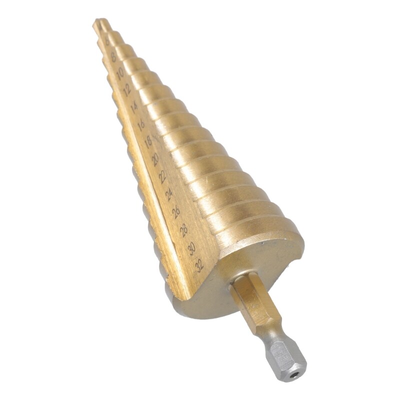 This HSS step drill bit is a game-changer for DIY projects! It cuts through steel, plastic, and brass effortlessly thanks to the high-quality steel and friction-reducing coating. No more swapping bits—the multiple sizes (4-32mm) handle different holes smoothly. The triangular shank ensures a secure grip, and the sturdy build lasts. Perfect for clean, precise drilling every time. Highly recommend!