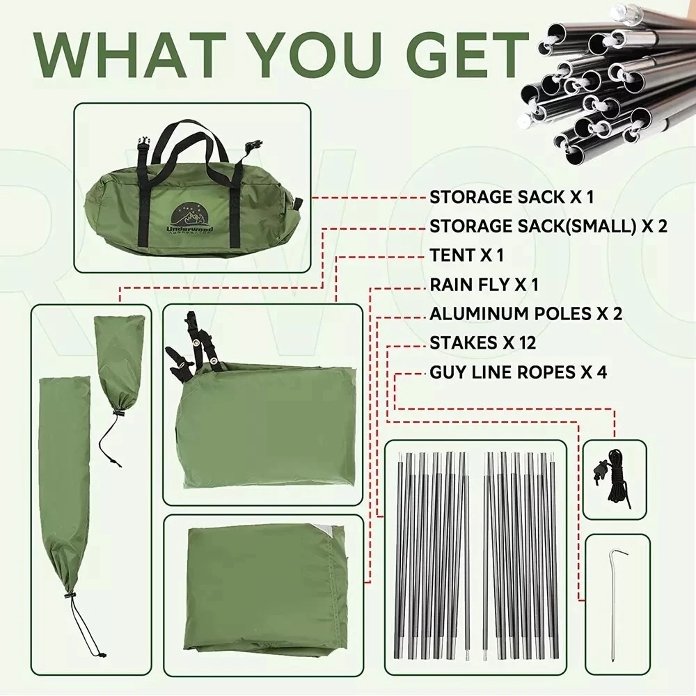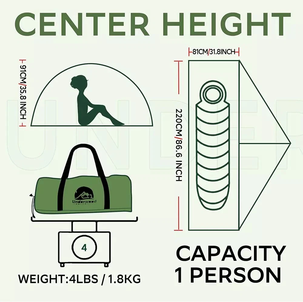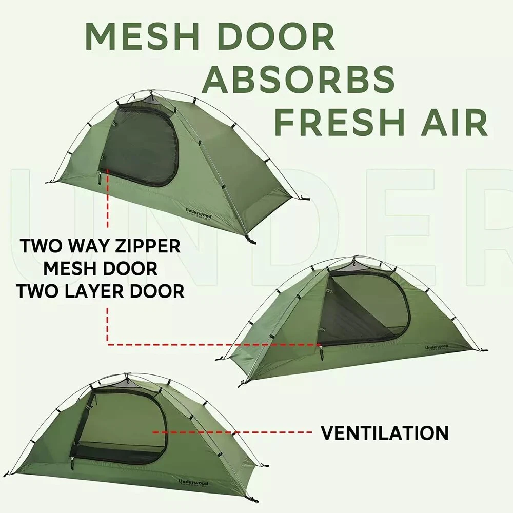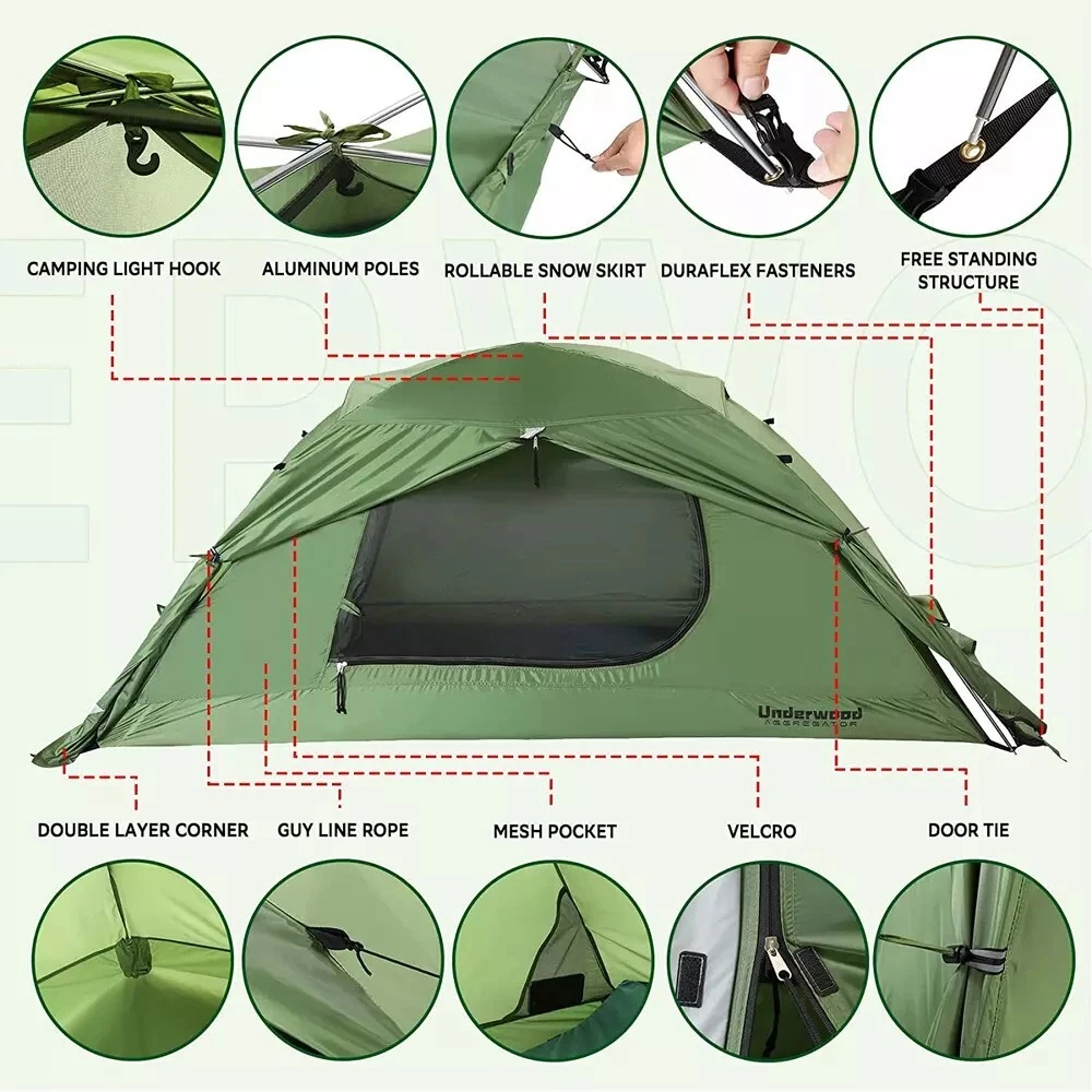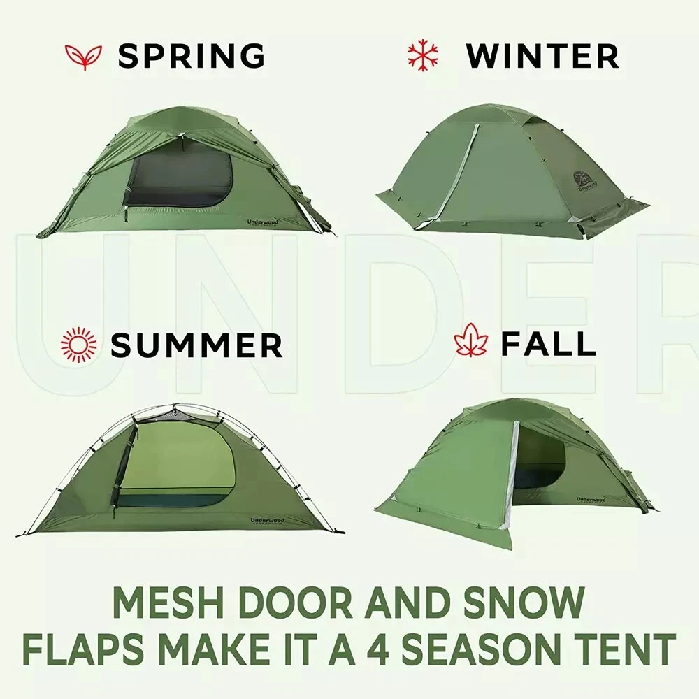 About this item Mesh Imported FOUR SEASON TENT: While other 3 season tents are only available for spring, summer, and fall, this extreme weather tent is suitable for all seasons of the year. In winter, the snow skirt of this 1 person backpacking tent makes sure that it can keep snow away. The rollable design makes it convenient when there is no snow around. In other seasons, the mesh design of the 4 season backpacking tent keeps bugs away while the double-layer door ensures ventilation SMART DESIGN: Two-way zipper is a little trick for using the ultralight backpacking tent at ease. The interior of the hiking tent has a camping light hook to hang a lantern and a mesh pocket to store your camping accessories or cell phone. Double-layered corners can withstand high winds and powerful storms. That makes it a heavy duty tent. This single person tent is a good choice for outdoor activities. Moreover, this winter camping tent pairs well with the camping mattress in the store SINGLE PERSON TENT: This lightweight backpacking tent is designed for a single person, a good choice when you want to have some private space. With a center height of 35.8’’ and a floor size of 31.8’’ X 86.6’’, its packed size is 5.1’’ X 15’’, weighing just 4 pounds. This outdoor camping tent is super compact, lightweight, and easy to store. The freestanding structure can keep this small camping tent together with aluminium poles and the duraflex fasteners connect the tent and the rain fly UPGRADED MATERIALS: The backpack tent is designed with premium materials to be used in all weathers of the year. Includes sturdy aircraft grade aluminum poles and full cover rain fly for winter temperatures. The aluminum poles of the waterproof tent are light and tough. The rain fly design and PU5000mm coating of the cold weather tent make sure the interior is dry and clean. All these make the small camping tent windproof and waterproof BETTER CUSTOMER SERVICE: The Underwood Aggregator winter tent undergoes rigid inspection before its departure from the factory. Should you have any problems with the 1 man tent, please don't hesitate to contact our customer support team. We are ready to help and happy to hear from you. Your satisfaction, our responsibility