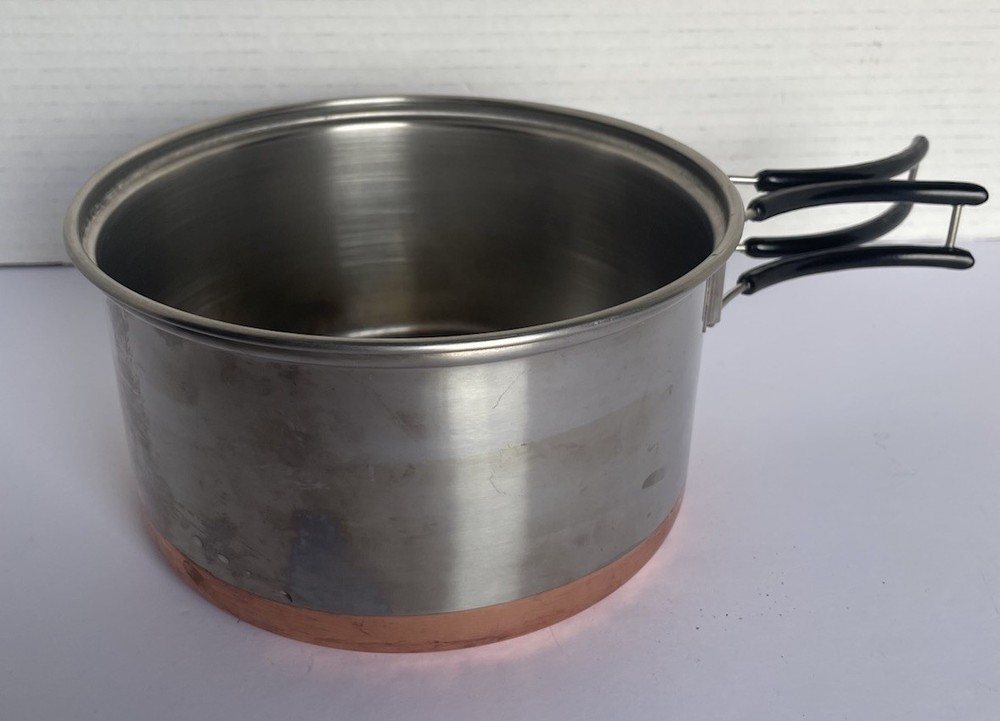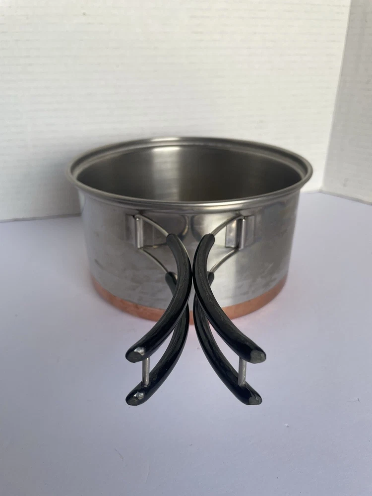 Camping 1Qt. Cooking Stainless Steel Cooking Pot Moveable Handles Copper Bottom. Condition is Used. Shipped with USPS Ground Advantage.