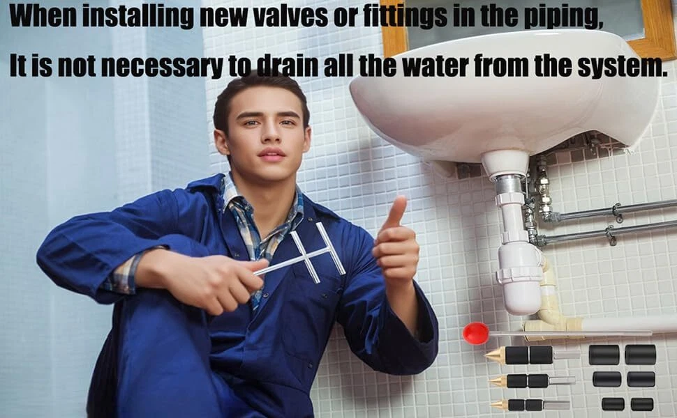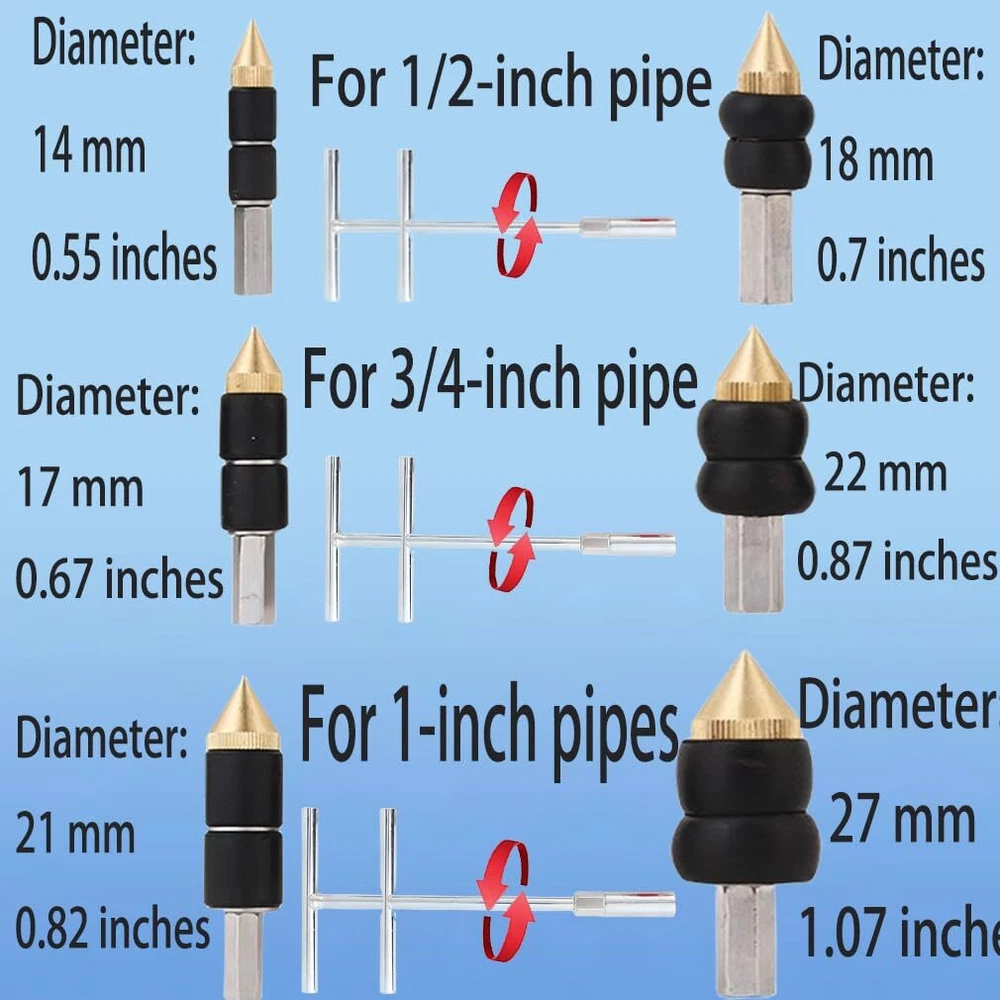 The Plumbing Hero: When a faulty water pipe or the main valve cannot be closed, the pipe repair by hot fusion becomes impossible. Worry not, for water stop needle plumbing kit is here! This clever pipe tool can seal under 60 lbs. of water pressure without draining the system. Ergonomic Design: Our pipe stopper pins allow for immediate shutoff of water supply lines! The included T-wrench hand tool includes an additional protective bar, setting it apart from the competition while assuring reduced torque and energy consumption - no more unwanted drips during repairs! Adaptive All-Rounder: With its high heat resistance, this ultimate plumber tool can be used for both indoor and outdoor cracks, on a variety of surfaces, including walls, corners, and tunnels. To stop the water flow, place the pipe water stopper on the pipe and twist the dowel to let the rubber slide. Reliable Convenience: This repair tools & home improvement solution uses rust-resistant stainless steel for rapid and long-lasting fixes to pipe leaks. Its lightweight, robust, weather-resistant build is ideal for year-round tasks, including home renovation, building maintenance, and drinking water operations. Leak Slayer Deluxe Kit: The kit contains three different-sized PPR Tube Water Stopper Needles (1/2", 3/4", and 1"), a release pin, a double-bar t-wrench, and extra rubber sleeves; all of which are suitable both as household gadgets and as professional plumbing tools.