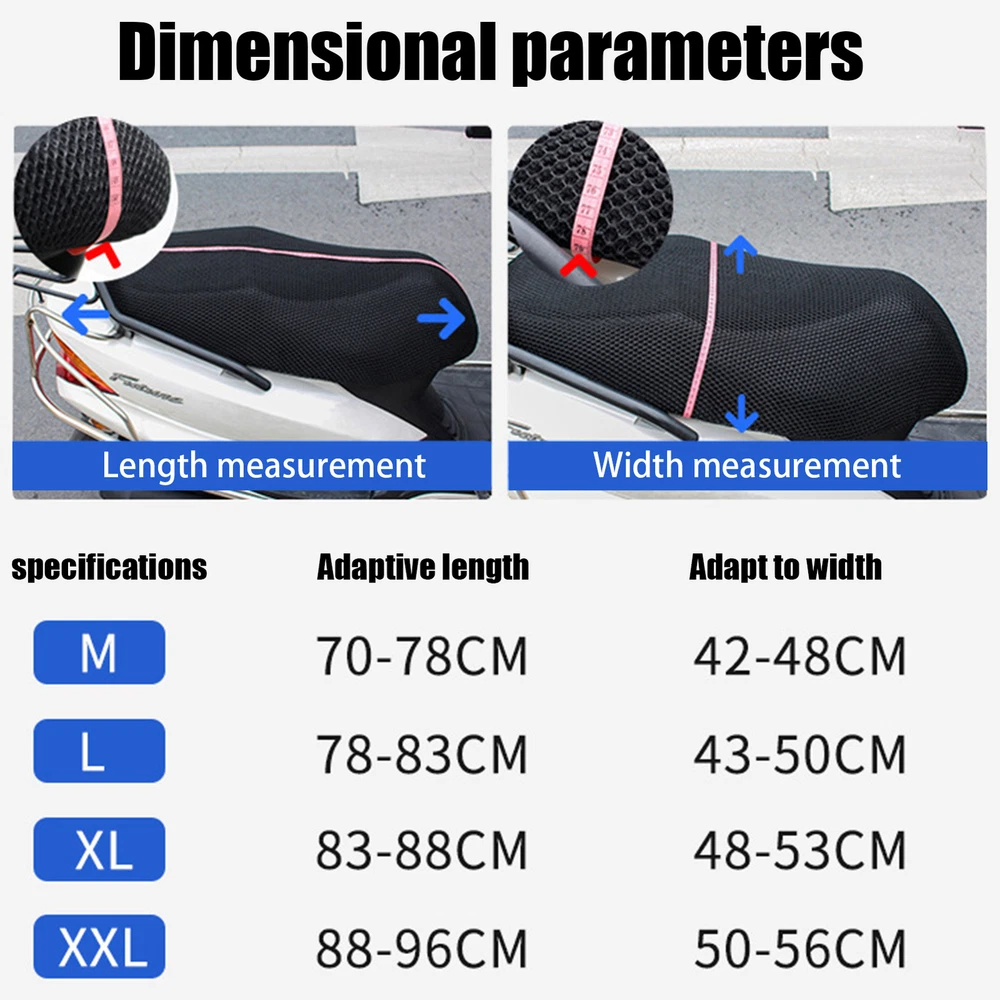 1*Size XXL Motorcycle Seat Cover Anti-slip 3D Mesh Fabric Relief Shockproof Bullet Points: Breathable Cover: Our Motorcycle Seat Cover boasts a 3D honeycomb design that captures and circulates air, quickly absorbing sweat to ensure excellent ventilation and heat insulation. Say goodbye to discomfort and hello to ideal comfort. High-class Materials: The motorcycle seat cover features a solid mesh design made of safe, wear-resistant materials and provides excellent pressure dispersion and vibration damping. You'll enjoy a comfortable and smooth ride, without worrying about deformation or damage. Slip-proof Seat Cover: Our Motorcycle Seat Cover boasts a highly elastic anti-slip texture, avoiding riding accidents, and ensuring a comfortable and safe ride. Vast Application: Constructed to provide ideal protection for your motorcycle seat, this cover features a safe and waterproof material. Its non-slip bottom keeps the cover in place, preventing scratches and damage caused by harsh weather conditions. Hassle-Free Application: Place a perfectly sized mesh cover over your motorcycle seat for a quick installation. Relax knowing that your seat cover is stably fixed. Save time and effort while delightful the convenience of this easy-to-install and remove motorcycle seat cover. This motorcycle seat cushion cover has a breathable design for long service life. It's comfortable and highly elastic, fitting perfectly for your motorcycle seat. Save time and effort with this easy-to-install cover. Specification: Name: Motorcycle Seat Cushion Cover Material: sandwich fabric/honeycomb mesh Product Size: A: about 47x35cm/18.5x13.78 inches B: about 75x55cm/29.53x21.65 inches C: about 95x60cm/37.4x23.62 inches Packing List: 1* Motorcycle Seat Pad Cover Note: Due to different lighting and screen settings, the item color may be slightly different from the picture. Due to different manual measurements, please allow a 1-2cm difference in size. 1.You can make a Credit payment via Paypal.Paypal will let you use MasterCard,Visa to pay. 2.Payment should be completed within 5 days after auction closed, or unpaid dispute will be filed for an closing auction.An unpaid case will be filled after 4 days. ● We strive for 100% customer satisfaction ! ● Positive Feedback is very important to us. ● We hope that you contact us immediately BEFORE you give us neutral or negative feedback, so that we can satisfactorily address your concerns. ● We promise to offer the lowest price and high quality produce. Dear buyers : ● Welcome to my store ! ● Your satisfaction is our top goal,we appreciate your patronizing. ● If you have any questions, please contact us before leave negative or neutral feedback, we will try our best to solve the issue to your satisfaction, thanks ! ● If you are satisfied with our service, please rate the details of the transaction (Detailed Seller Ratings) on eBay. ● Please always talk to us via ebay Message. ● We appreciate your business and look forward to growing our e-Bay sales with satisfied customers.