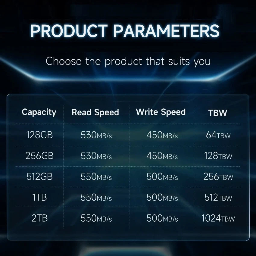1TB 512GB 256GB SSD 2.5'' SATA SSD III 6Gb/s 560MB/s Internal Solid State Drive Solid State Disk Introduce: Physical dimension: 2.5 Inch(100mm×70mm×7mm) Product Model: SATA 2.5" Interface: SATAIII、SATAII、SATAI Application: Desktop、Laptop、Ultrabook、Computer integrated machine Features:quickness、stabilization、energy-saving、Mute、Light weight SSD Capacity: 32GB/60GB/64GB/120GB/128GB/360GB/480GB/512GB/1TB/2TB System support: Windows xp、windows 7、Windows8. 1、Windows 2003、Windows 2008、DOS、Linux、Unix. Warranty: 3 years Application scenario The 2.5 interface compliance for mostly desktop and laptop. Performance Testing There are differences in the read and write speeds of different capacities, different windows version or computer model still have speed differences, so please treat them rationally. In most times the speed of laptop should be lower than Desktop.