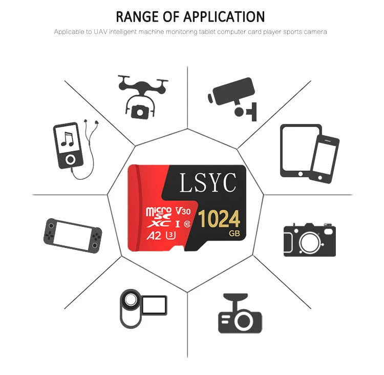 Specification: 1. 100% brand new Real Capacity card 2. Higher speed and greater storage 3. Not compatible with Nintendo Switch 4. Perfect for cell phones, cameras, MP3/MP4 Player, etc. 5. 100% satisfaction guaranteed 1024 GB Class 10 Memory Card Weight (Kg): 0.01 mobile memory cards plug directly into most phones with a card slot Highlights Three-month limited** warranty Great for capturing and storing photos and other media Increased capacities let you record and store more photos, music, HD† videos and other media Works with most mobile phones and tablets with a memory card slot†† Water proof, temperature proof, x-ray proof, shock proof‡ Compatibility Compatibility With and For devices with For Micro SD card slots enabled host devices including smartphones, tablets, laptops, digital cameras, game consoles, drones, etc. It provides you with speed and storage to capture more adventures OTG and also gives you a fast gaming experience.