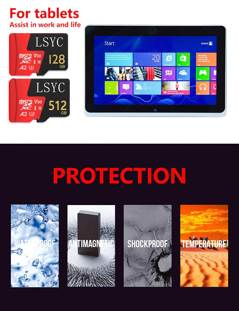 Format: MicroSD Brand: LSYC Features: High Capacity, High Speed Speed Class: Class 10 Manufacturer Warranty: 3 Months Compatible Brand: Universal Storage Capacity: 1TB gtin13: Does not apply UPC: Does not apply