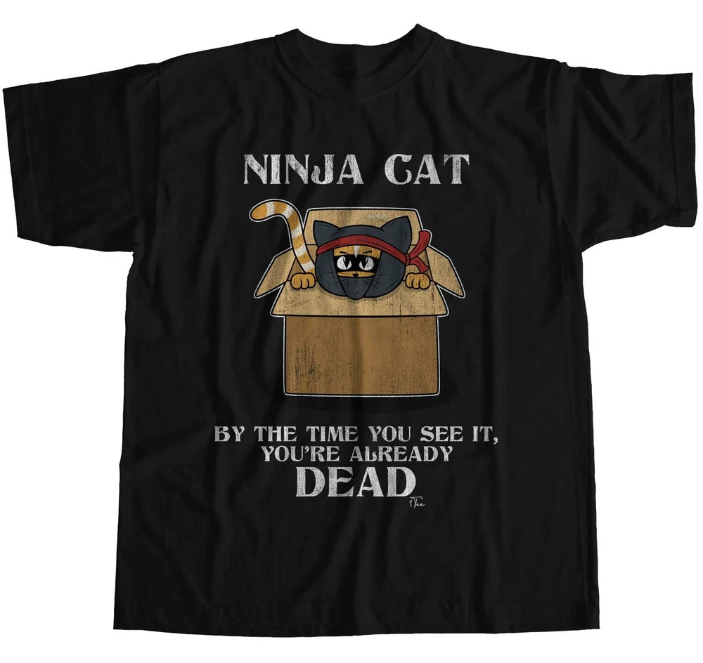 1Tee Womens Loose Fit Ninja Cat, By The Time You See It You're Dead T-Shirt This little ninja cat is the purrfect assassin! The perfect t-shirt for cat lovers who loves their own ninja cat. - Womens Loose fit t-shirt - Soft ringspun cotton - Short Sleeves - Available in sizes: S, M, L, XL, 2XL, 3XL, 4XL, 5XL - Beautifully made t-shirts for you to enjoy - Fully machine washable whilst retaining shape, feel and quality - Iron inside out to prolong the life of the t-shirt We use the latest printing technology to ensure prints will not fade or crack after washing. Returns / Exchanges If you need to exchange or return for a refund please do not hesitate to contact us, we offer a 30 day returns policy, all we ask is the t-shirt is not worn.