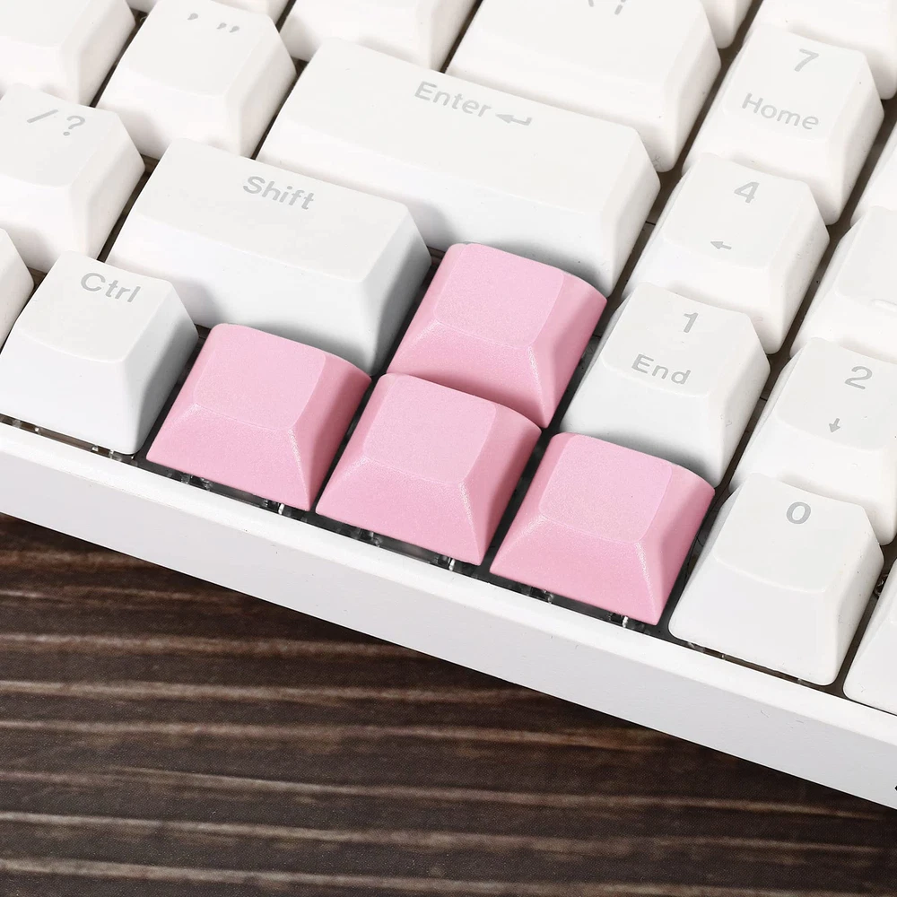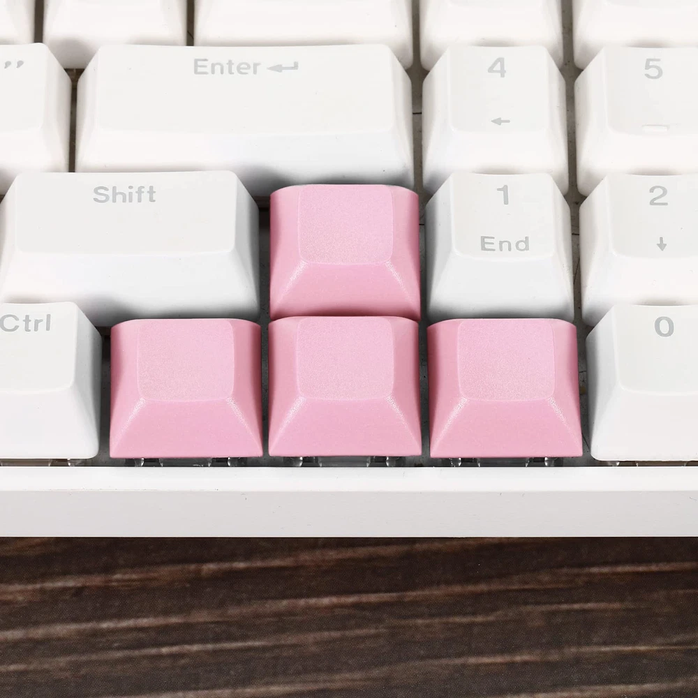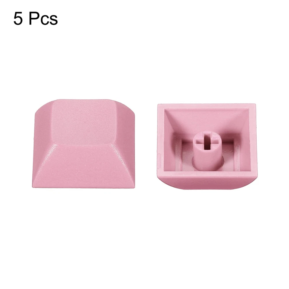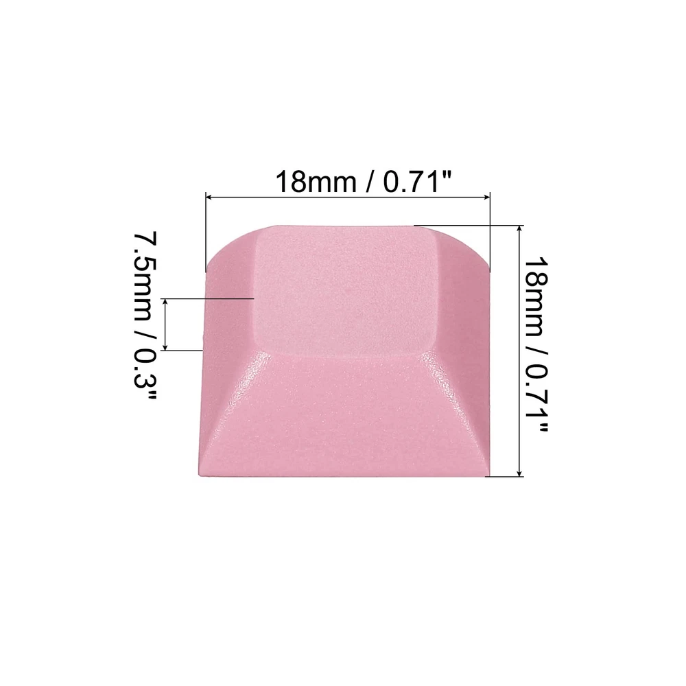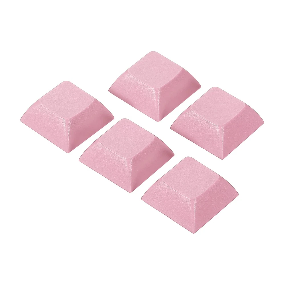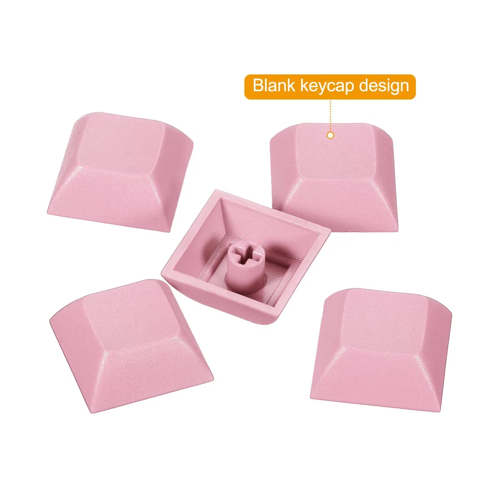Color: Pink; Material: PBT; Fit for: Universal MX Switches Keyboard; Size: 18 x 18 x 7.5mm / 0.71 x 0.71 x 0.3 inch (L*W*H); Packing List: 5 x Keycaps; Advantage: Made of PBT, strong and durable, it has the advantages of high mechanical properties, high hardness, high-temperature resistance, and aging resistance. Adopt ergonomic step radian design and line flow. Allows you to tap the keyboard in a natural posture and feel the ease of long-term hitting. Blank keycaps, the keycaps are designed without characters. The structure design of the keycap is reasonable, it can be easily pulled out, and easy to install and replace. Instruction: Press the keycap directly on the keyboard shaft, and pull it out directly when you need to replace it. Application: This keyboard accessory is for the maintenance and repair of computer keyboards for home and office use. Note: The package contains only keycaps, not the keyboard.