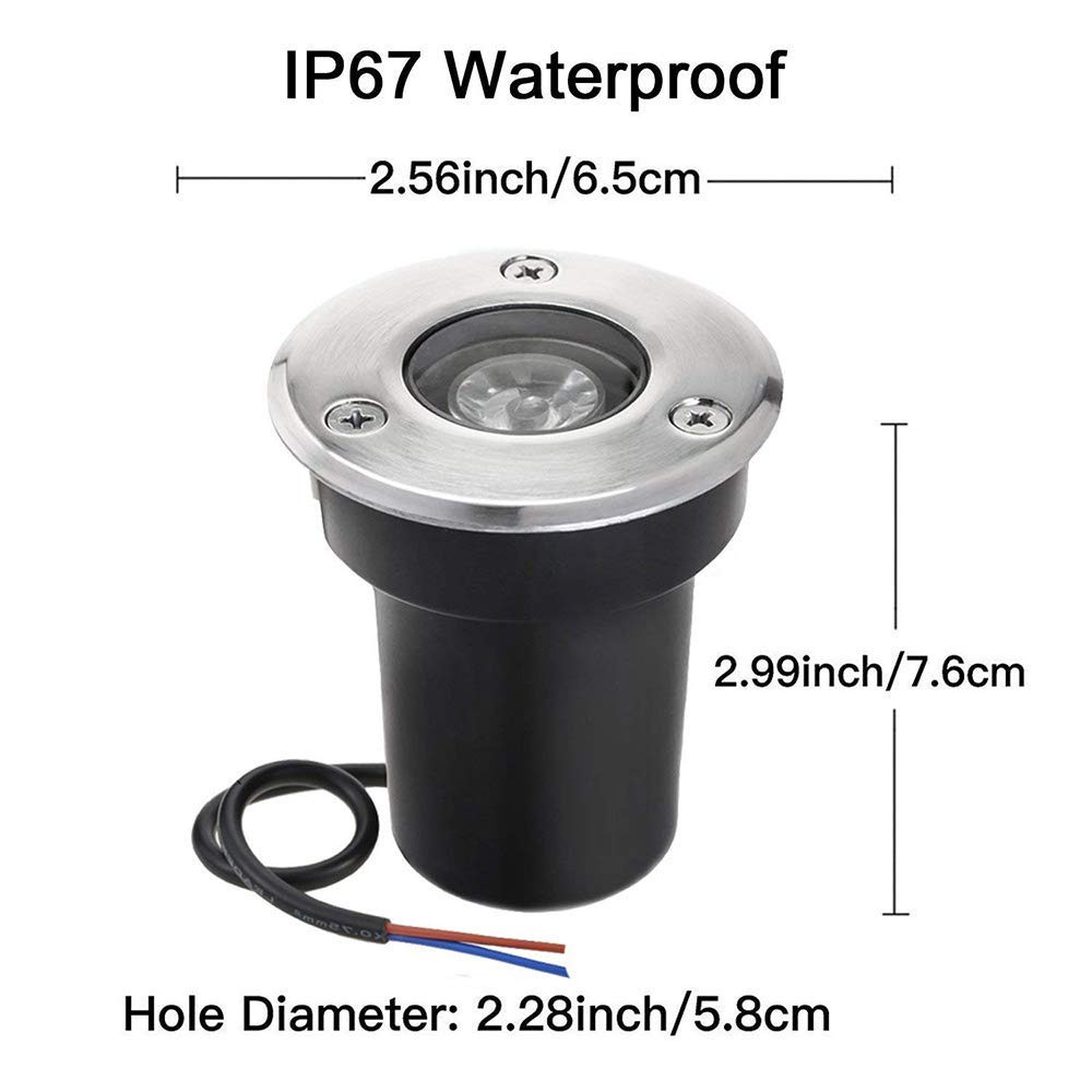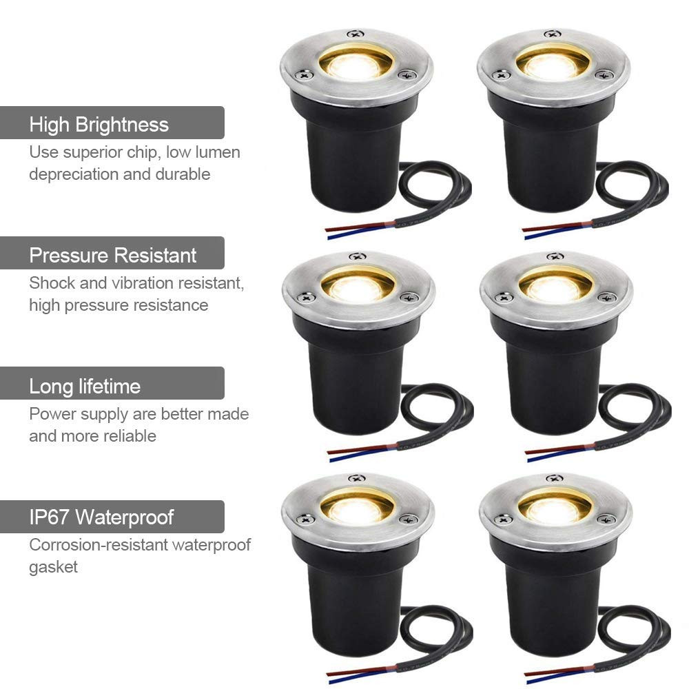 Premium Grade Components: The convex lens are clear, make these buried landscape paver lights appear brighter than the typical one. High temperature tempered soda-lime glass for high-impact resistance. High quality LED light chip, up to 30,000 hours. Safe Voltage: 12V or 24V working voltage, compatible with most low voltage landscape lights transformer. Easier and safer to install, and energy saving. (Transformer required to change 110V to 12V or 24V; (electrical wire and transformer NOT included) IP67 Waterproof: Water tight seals, pressure rubber gasket, rubber seal around wire exit. IP67 waterproof deck lights, perfect for outdoor lighting. Warm Light: The 100 lumen output and 90° beam angle makes these led landscape lights ideal for illuminating pathway, flower beds, trees, fences, flag, walkway, stone wall, doorway, swimming pool and more.