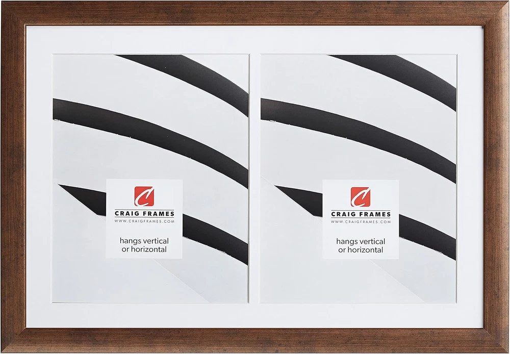 Celebrate and display your cherished memories with our framed collage mats Complete collage kit includes: picture frame, white matting, acrylic facing, cardboard backing and hanging hardware Matting has 2 - 8 by 10-inch openings (actual opening size: 7.5 by 9.5-inch) Frame moulding is 1 inch wide; black; smooth wrap finish; wood composite material Matting is .05 inches thick; white with cream core; pH neutral; bevel cut openings Introducing the Craig Frames 12x18 Black Picture Frame, designed with a collage mat to elegantly display two 8x10 photos. This sleek and modern wall display frame is the perfect addition to any home or office, adding a touch of sophistication to your cherished memories. Crafted with high-quality materials, the frame is durable and built to last, while the black finish complements any decor style. Showcase your favorite moments in style with the Craig Frames 12x18 Black Picture Frame.
