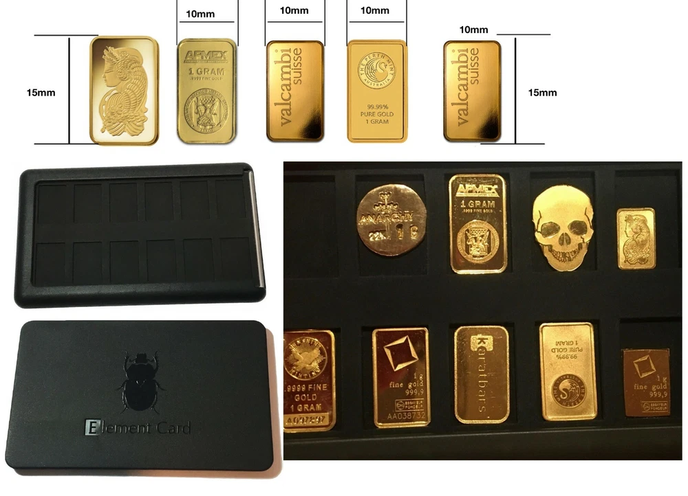 Element Card is here! Finally a vehicle for your precious metals that fits right into your wallet. Larger slots for the Element Card have been the most requested design change from the original Element Card. This particular Element Card holds single gram bullion bars from many different manufacturers including Pamp Suisse, Istanbul Gold Refinery, APMEX, and Credit Suisse. Included: 1 Element Card in matte black 1 Gram of silver bullion bar d ouble dragon exclusive design. 1 Element Card logo sticker decal