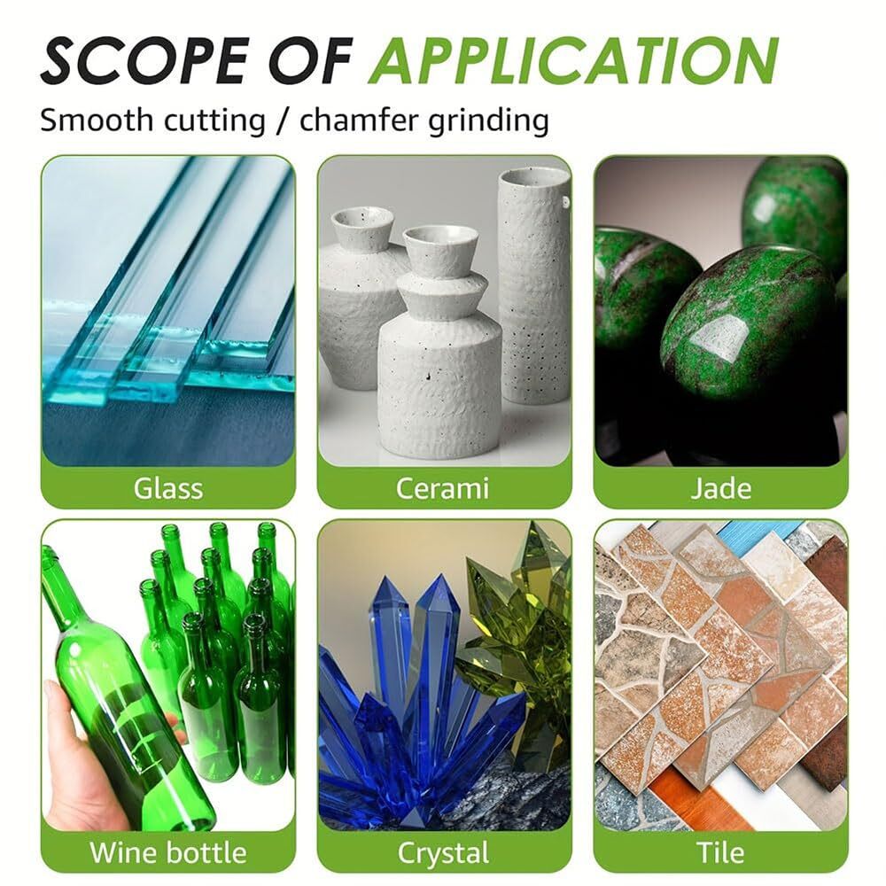 Rock Slab Grinding Disc, Glass Cutting Disc, Discos para Cortar Ceramica, 1mm Ultra-Thin Diamond Cutting Saw Blade for Smooth Cutting, Grinding of Glass, Jade, Crystal, Wine Bottles, Tile (5) Rock Slab Grinding Disc: Glass Cutting Disc is crafted with diamond high-manganese steel and advanced brazing, this diamond glass cutting discs offer greater heat resistance and reduced vibrations. Sharp, versatile with one piece, small slot, cut and abrasion resistant Precise and Fast Cutting: The ultra-thin blade ensures accurate, fast cuts, cut Everything in Seconds cuts. Whether the cutting material is slate, marble, ceramic tiles, or ceramics, you can easily cut, polish, and chamfer to complete the work perfectly Smooth Chip-Free Cutting: the 1mm ultra-thin saw blade does not damage the surface of the object, the grinding force is even, and the finish is good. Low grinding noise, less dust, less dirt and first-class cutting, extremely high precision, leaving your material clean and chip-free. Universal Compatibility: 4" (100mm) diameter, 0.04" (1mm) thick, compatible with all 4" (100 type) angle grinders, The Indestructible Disc is suitable for chamfering, grinding and smooth cutting of jade, crystal,marble , ceramics, tiles and other materials. Easy to Install and Use: Optimally thick and well-balanced, the glass cutting saw blade is easy to handle, and can be easily installed and used for dry or wet cutting, as well as long-time continuous cutting. Rock Slab Grinding Disc, Indestructible Disc for Angle Grinder, Rock Plate Flat Grinding Blade, Stone Ceramic Porous Widened Cutting Blades, Tile and Rock Slab Cutting and Angle Grinder Discs Indestructible disc -Rock Plate Flat Grinding Blade, Ceramic Tile, Marble Edge Trimming, 45 Chamfer Grinding Cutting Blade, Ultra Wide fine Sand Sweeping Saw Blade Klyzor Glass Cutting Disc, Disco para Cortar Ceramica, Glass Cutting Disc for Angle Grinder, Ceramic Cutting Blade, Rock Plate Flat Grinding Disc, Sanding Blade for Tile, Grinder Diamond ✔ Glass Cutting Disc is suitable for a new brazing process, high-density diamond sand, which can cut rock slabs, ceramic tiles, marble, ceramics, etc ✔ The brazing process is sharp, durable, and integrated. The workmanship is exquisite, and the safety performance is very high, so there is no need to worry about tooth loss ✔ The Rock Slab Grinding Disc is very light and thin, and the cutting is very sharp during use, with smooth sweeping and grinding, enabling more efficient completion of work ✔ The blade is covered with emery, durable/stable, with excellent cutting effect and smooth polishing, effectively improving work efficiency Specifications: Name: Glass Cutting Disc Color:green Weight:64g Size: 4*7/8 inch Package included: 3/5PCS * Rock Slab Grinding Disc Shipping We offer FREE shipping on all orders! We ship within Three business days of payment, usually sooner. We use a selection of shipping services such as UPS, FedEx, USPS etc. We only ship to the lower 48 states, no APO/FPO addresses or PO Boxes allowed. Local pickups and combined shipping options are not provided at this time. Return You can return a product for up to 30 days from the date you purchased it. Any product you return must be in the same condition you received it and in the original packaging. Please keep the receipt. Feedback Customer satisfaction is very important to us. If you have any problem with your order, please contact us and we will do our best to make you satisfied. Contact Us If you have any queries, please contact us via ebay. We usually respond within 24 hours on weekdays. Please visit our eBay store to check out other items for sale! Thank you for shopping at our store.