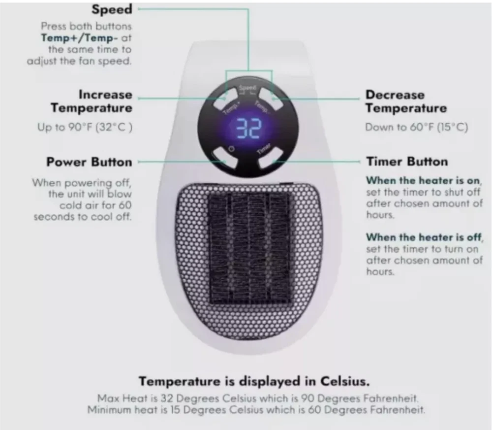 Brand: Unbranded Year Manufactured: 2024 Operating Sound Rating: 41-50 dB Use: bedroom,LIVING ROOM Features: Auto Shut-off, Timer Power: 800W Power Source: Electric, AC Type: Portable Heater