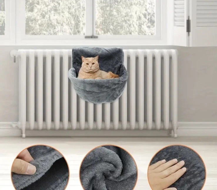 [1pc] Cat Hammock Pet Bed - Polyester Fiber, Soft Plush Kitty Swing Bed, Hanging Pet Cradle for Cats and Small Dogs, with Durable Iron Frame, for Radiator Heat, Home Cozy Nest, Easy Install, for Multiple Sizes - For Cat & Small Dog Owners - Suitable for Indoor Use - Perfect Gift for Pet Lovers