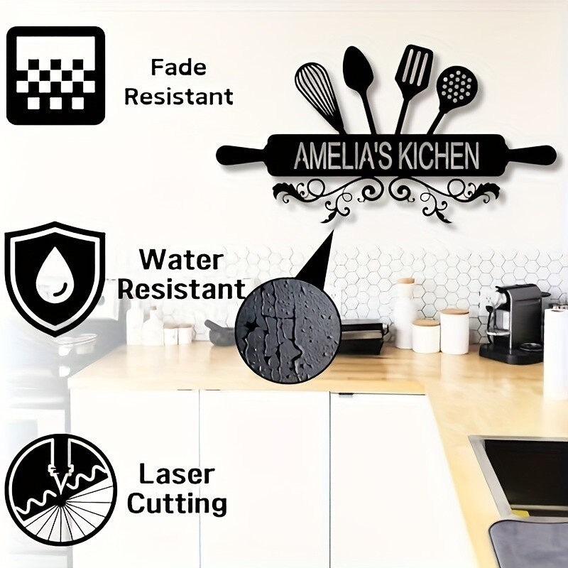 1pc Customizable Amelia's Kitchen Metal Wall Art in Art Deco Style with Detachable Design